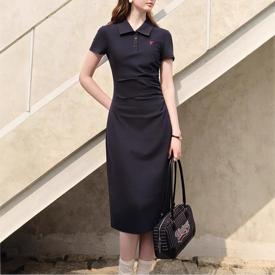 天才少女学院风polo连衣裙女2025夏新款长款收腰裙子