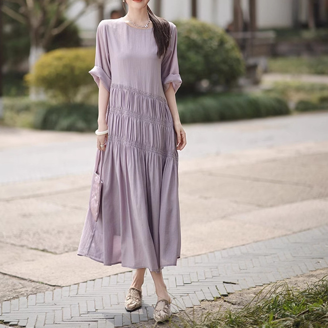 |爱炸裂2.0连衣裙|圆领蛋糕裙24新款醋酸中长款连衣裙