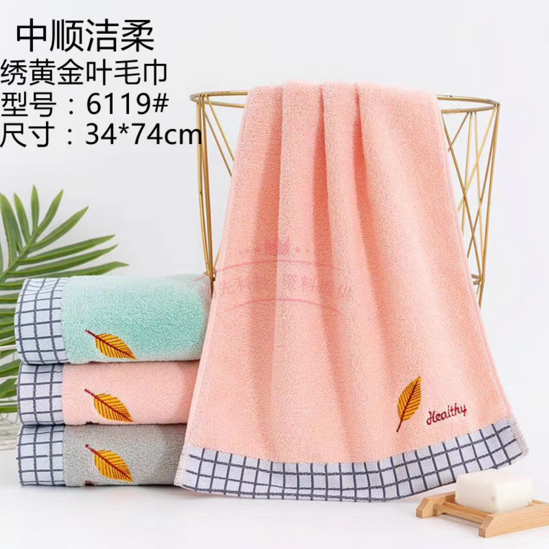 洁柔绣黄金叶面巾毛巾 纯棉女洗脸洗澡家用男士新款全棉吸水面巾