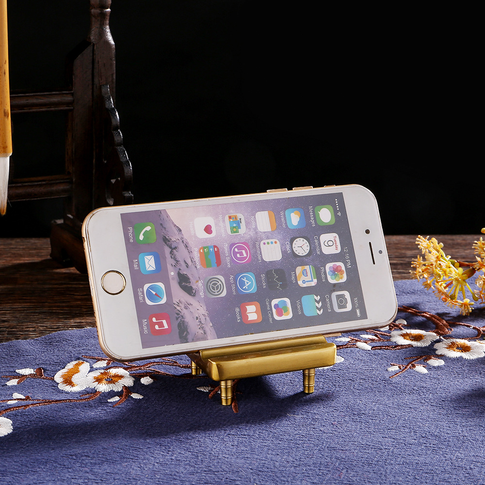 黄铜椅子手机支架手工铜工艺品新中式摆件