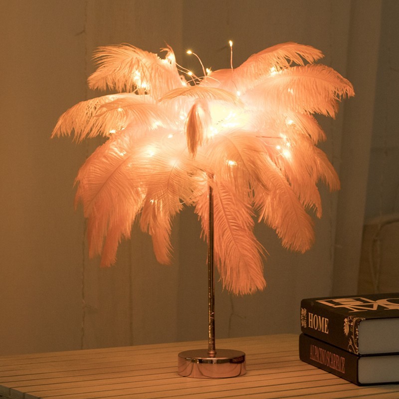 led手工羽毛装饰 灯遥控小夜灯卧室氛围轻奢彩灯浪漫创意装饰台灯