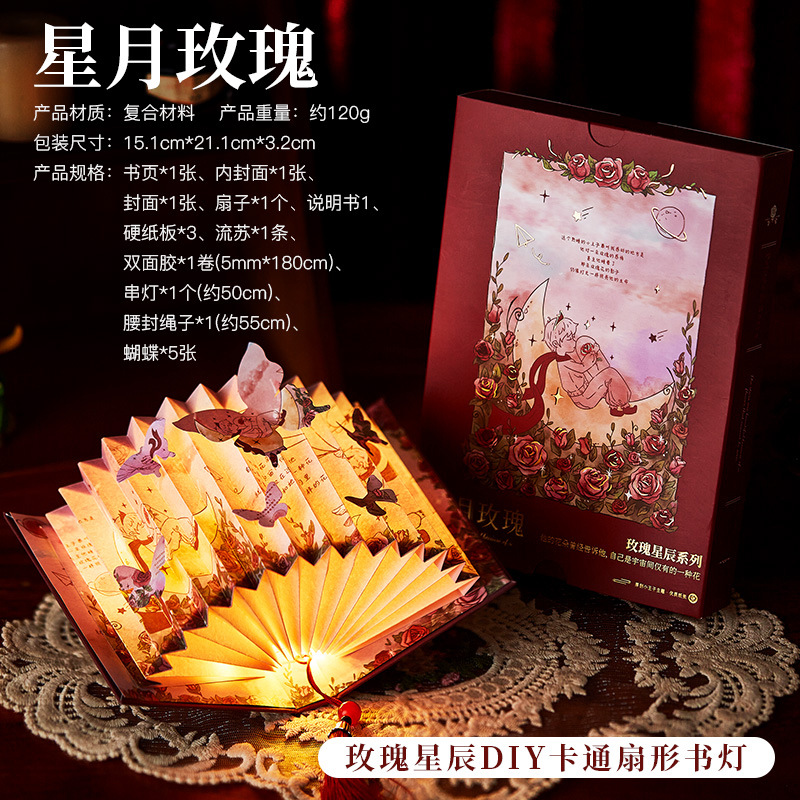中国风文创洛神赋扇形书灯创意国潮DIY古风高级折叠氛围感小夜灯