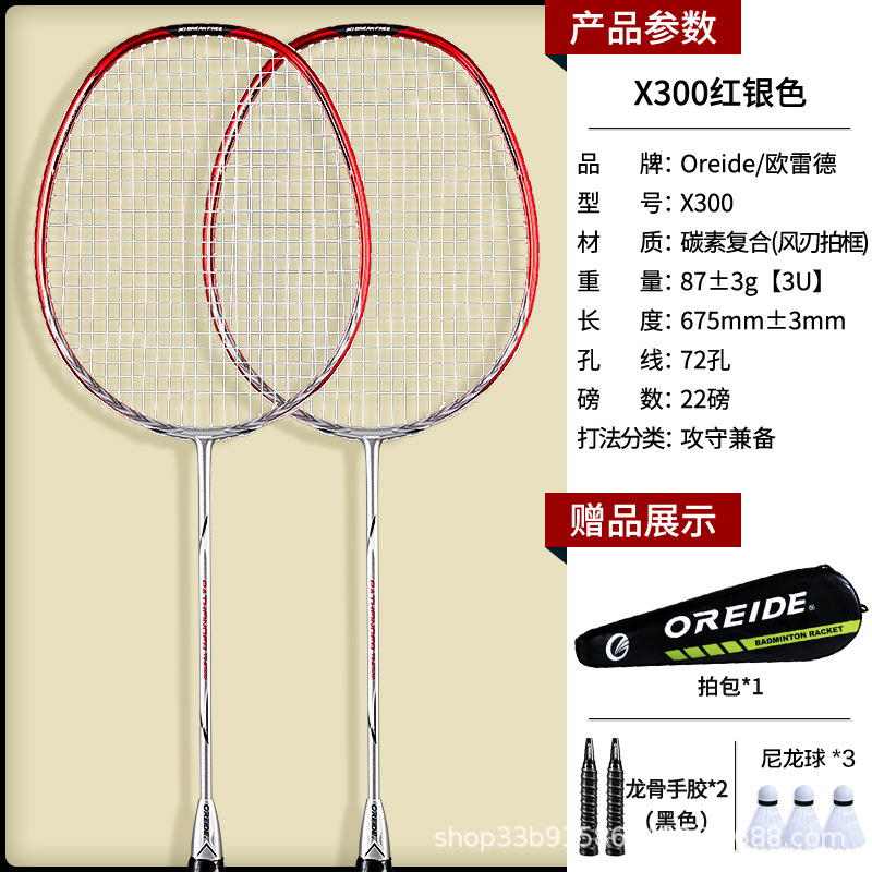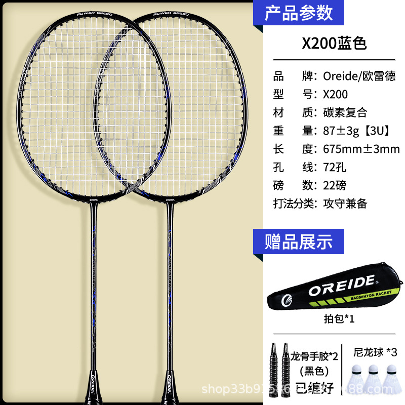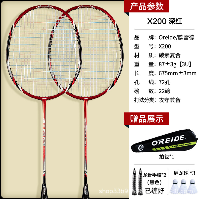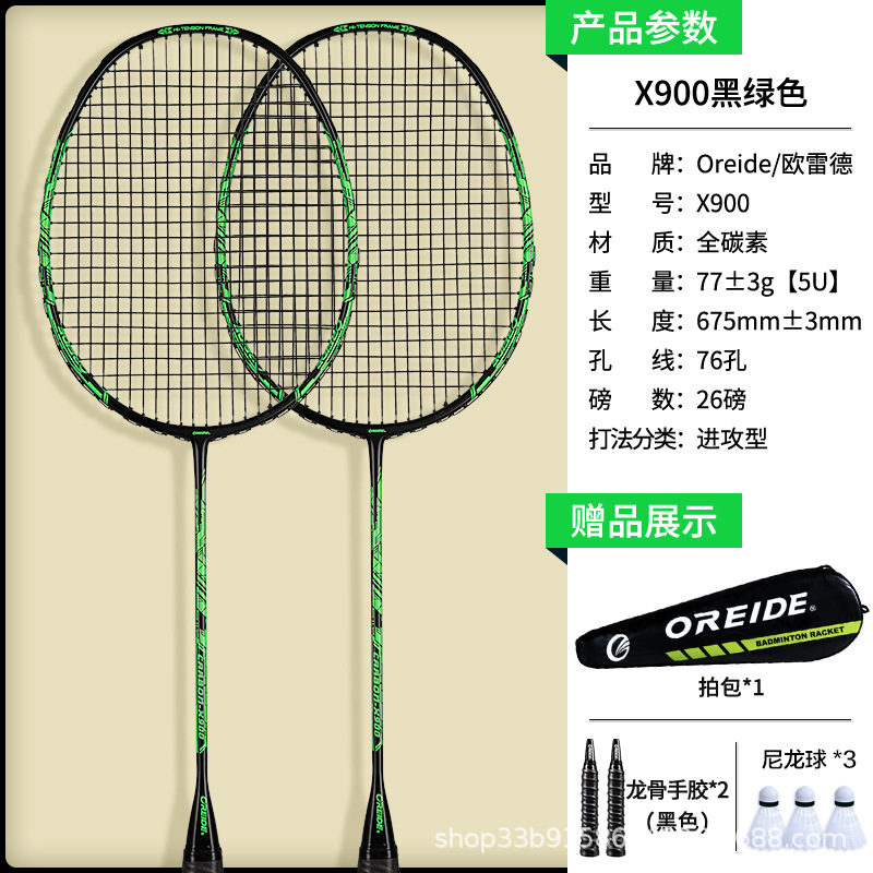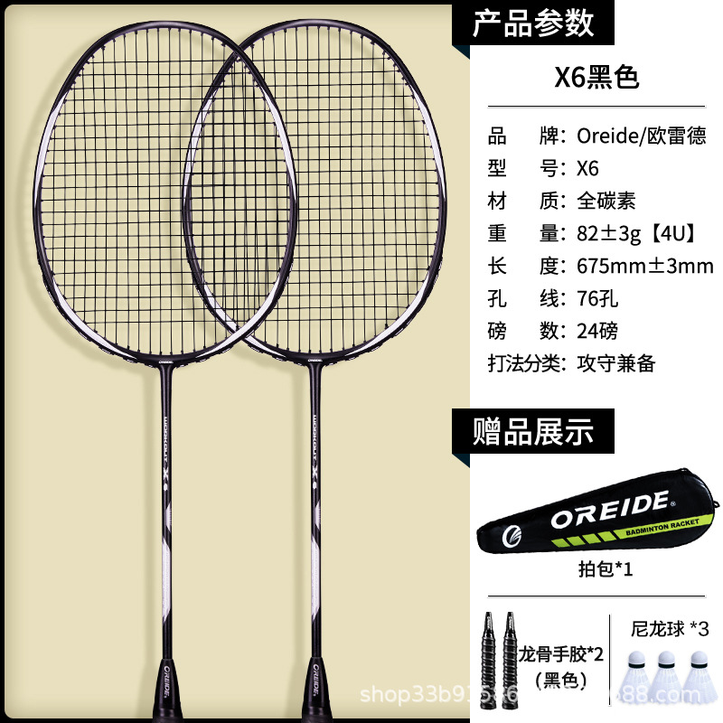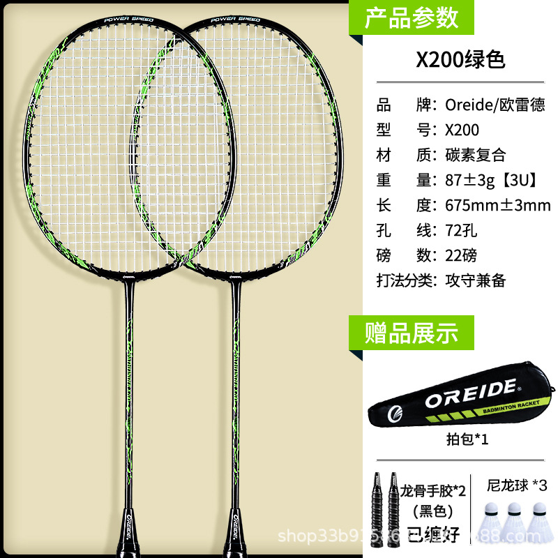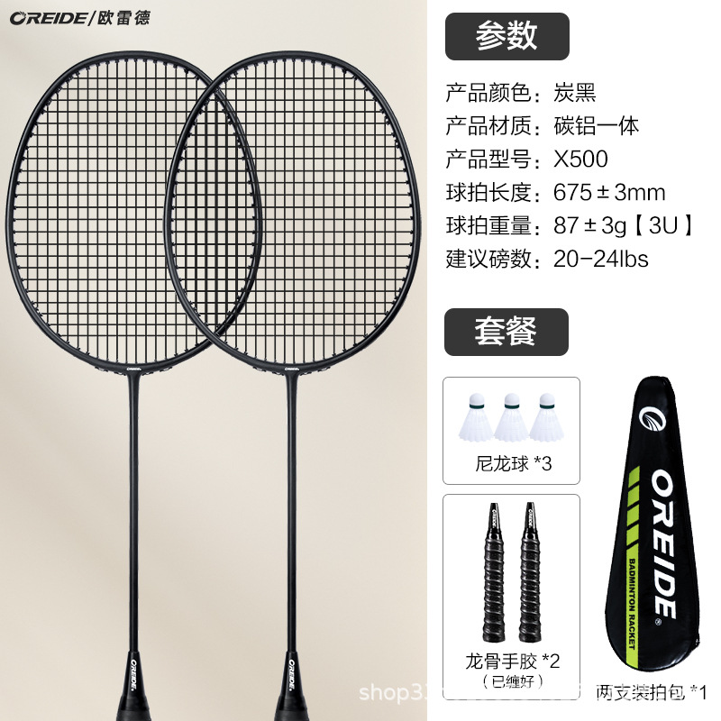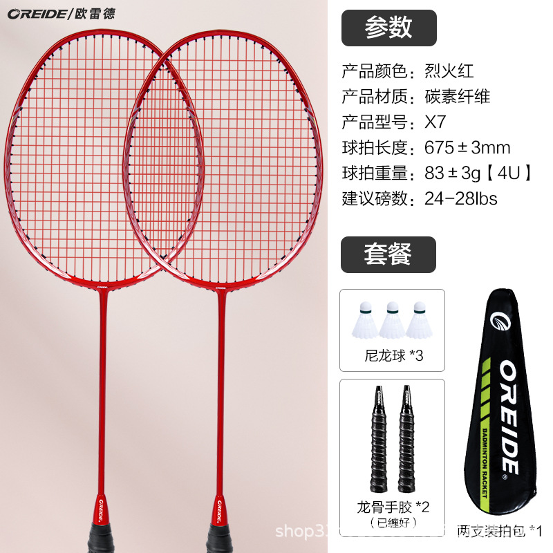 羽毛球拍碳素纤维双拍羽毛球套装超轻单拍进攻耐用型全