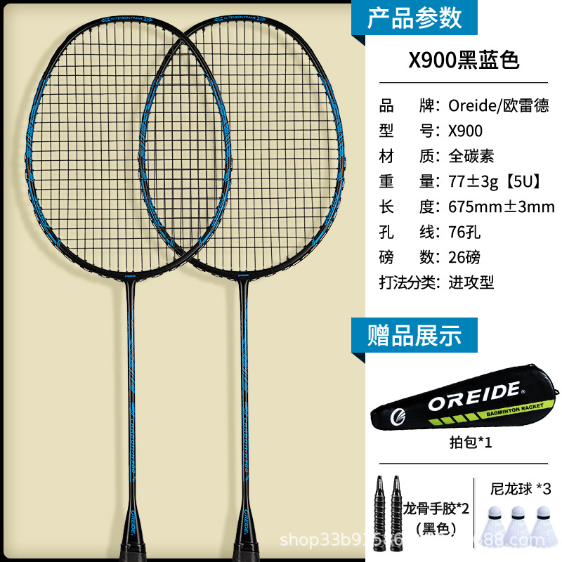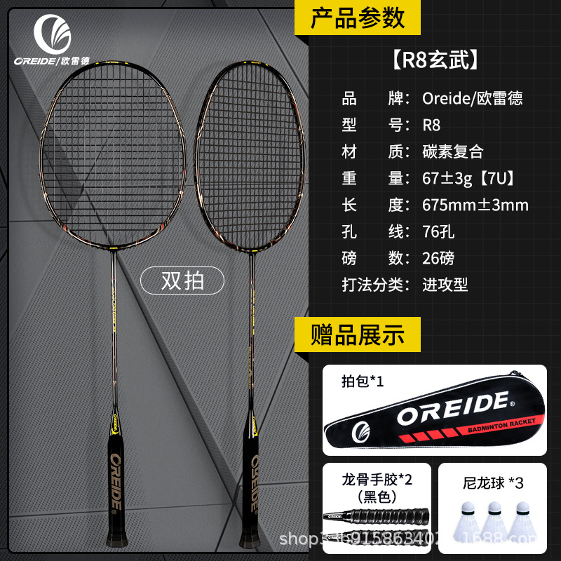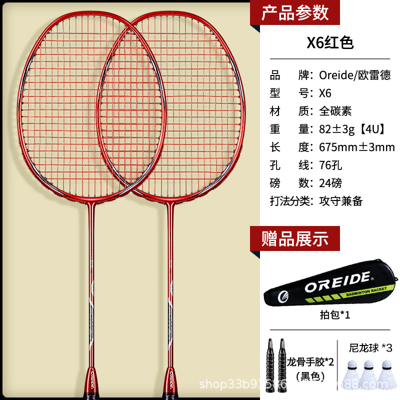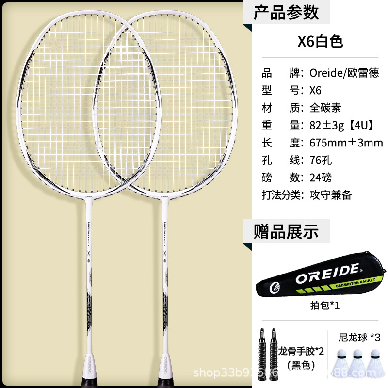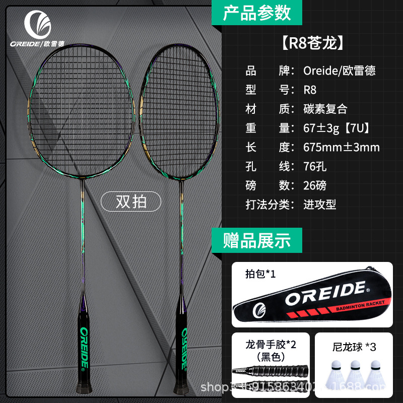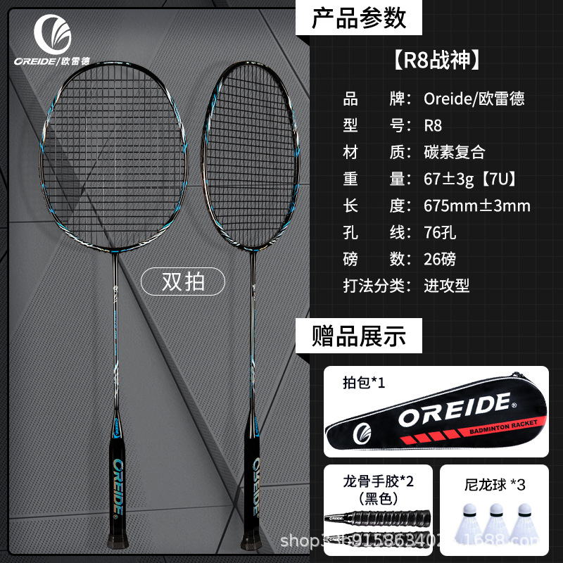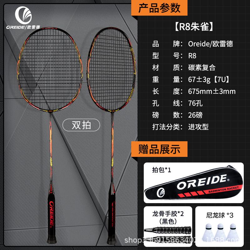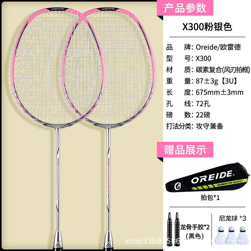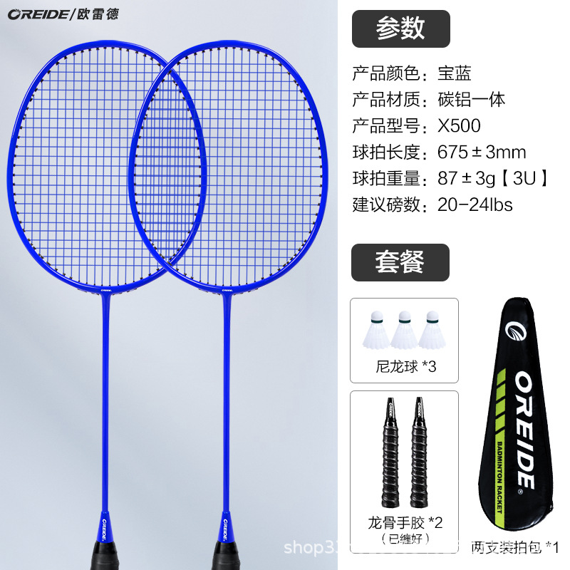 羽毛球拍碳素纤维双拍羽毛球套装超轻单拍进攻耐用型全