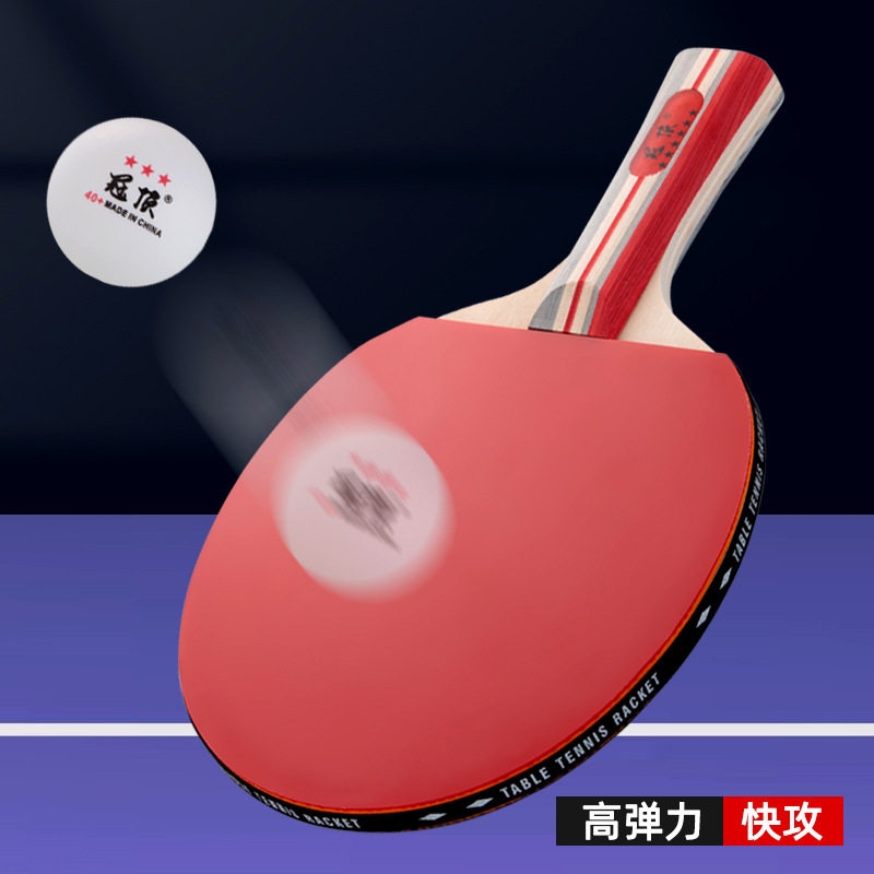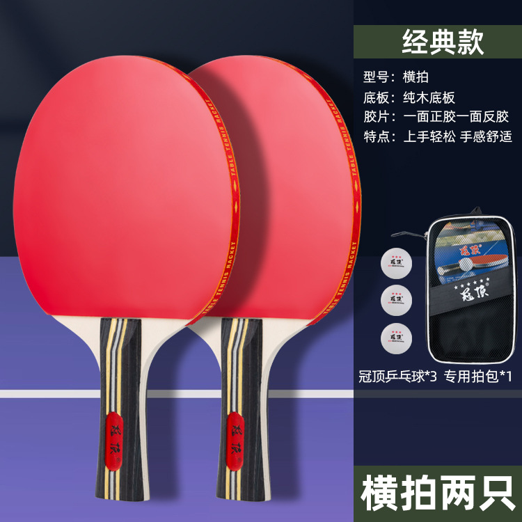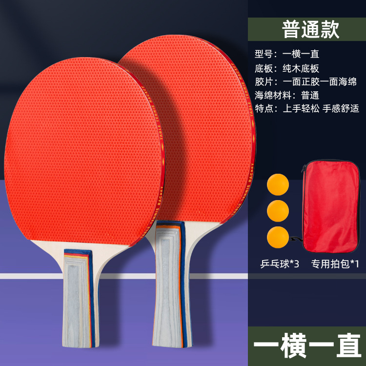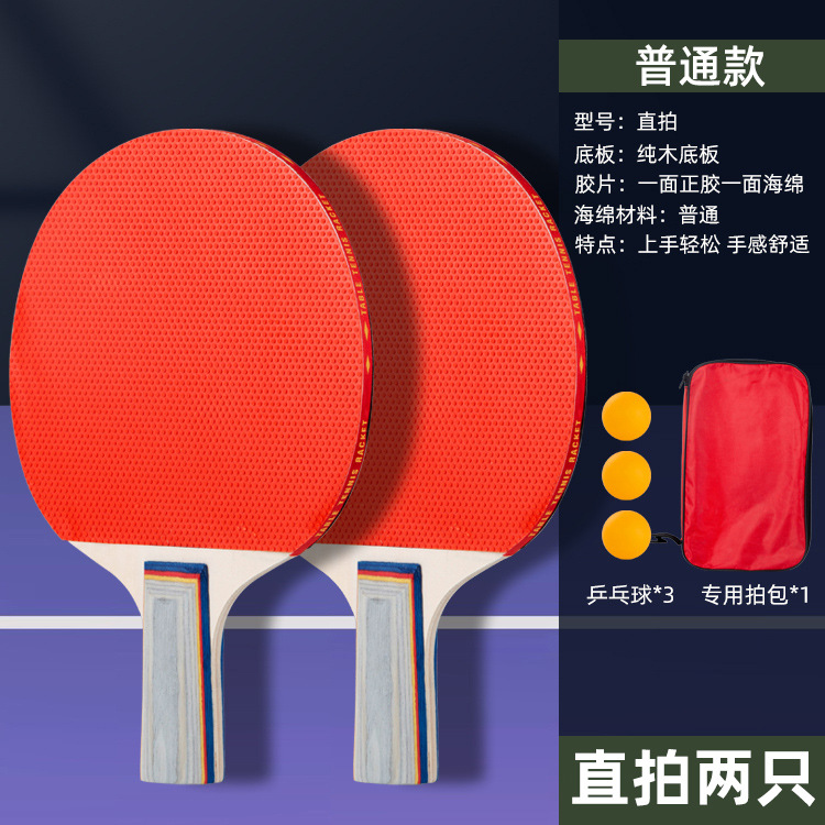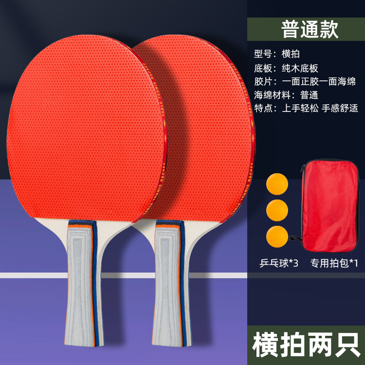 乒乓球拍套装初学者双面反胶成品拍直拍横拍2支装送3球