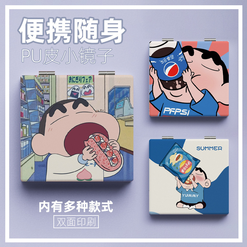蜡笔小新化妆镜学生实用礼物小镜子随身带补妆双面镜子便携折叠镜