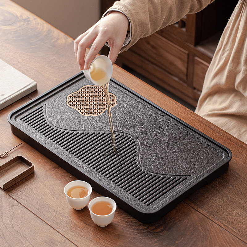 茶盘家用乌金瓷石茶具茶台储水排水式干泡台石头轻奢现代小型托盘