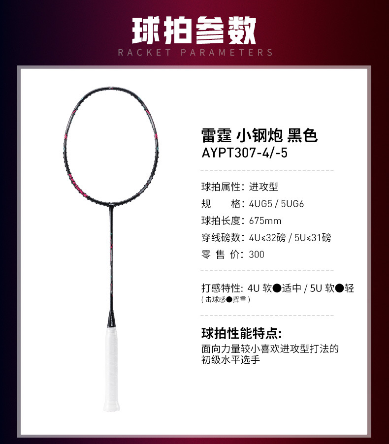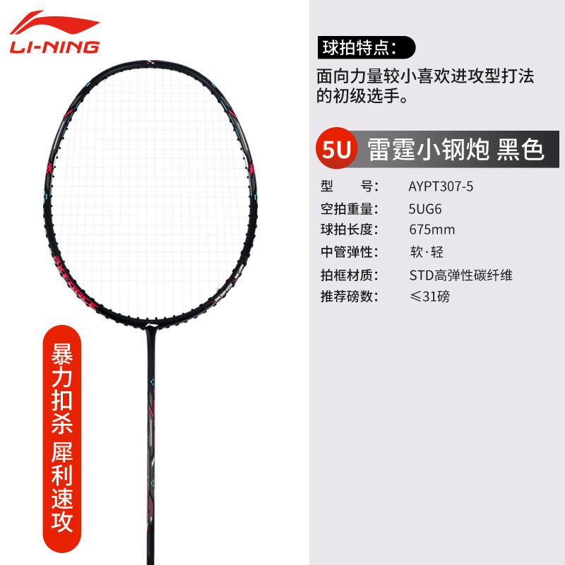 【穿线颜色随机 成品拍】 李宁小钢炮 5U 黑色