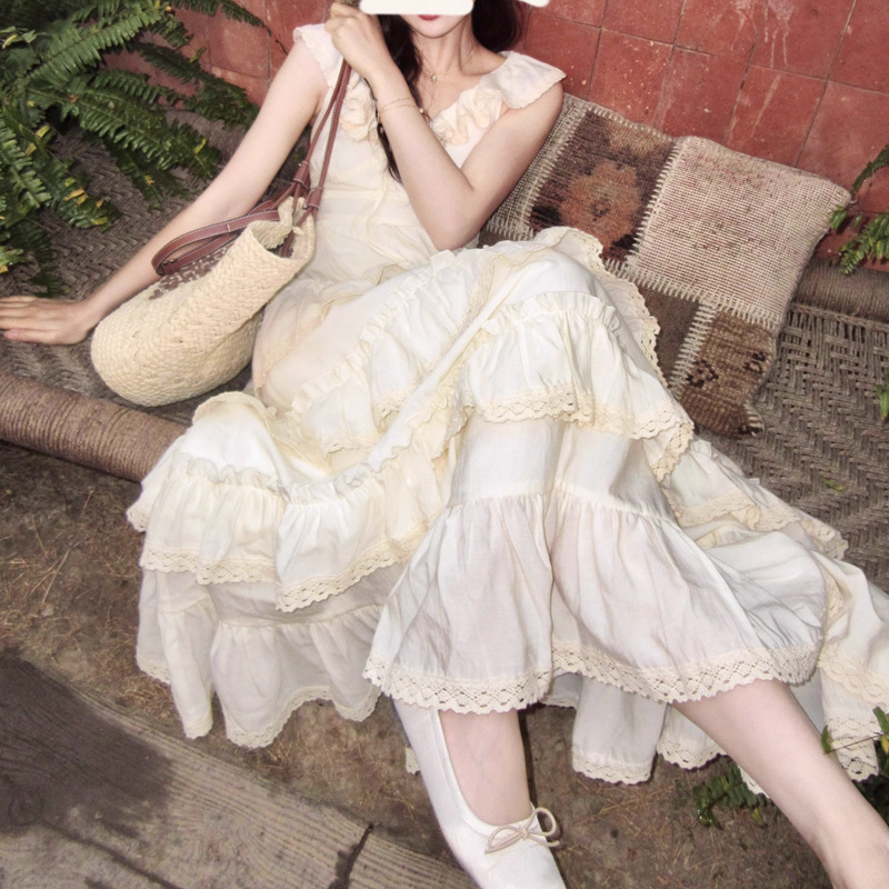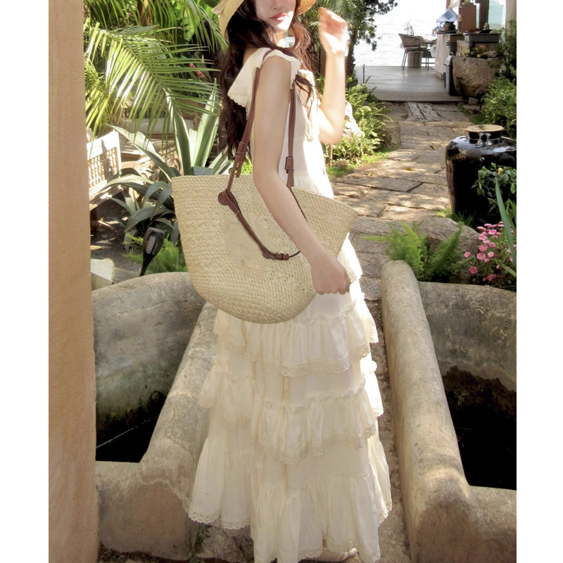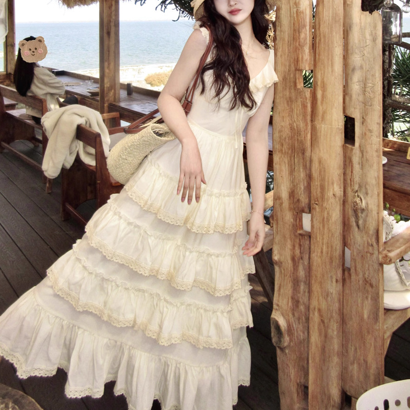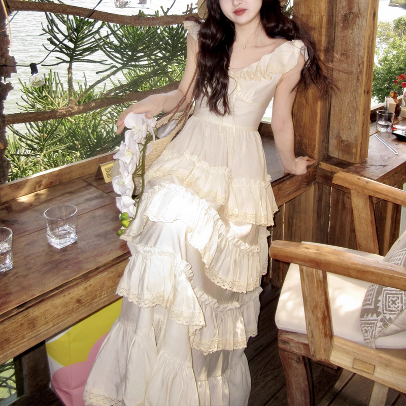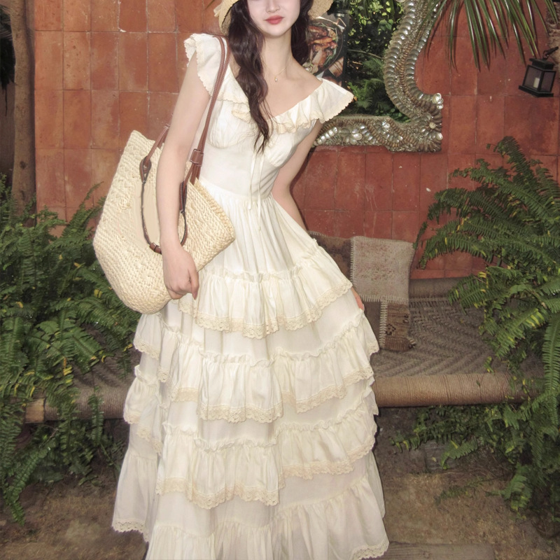法式优雅气质米白色蛋糕裙度假泰兰德连衣裙女仙