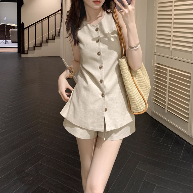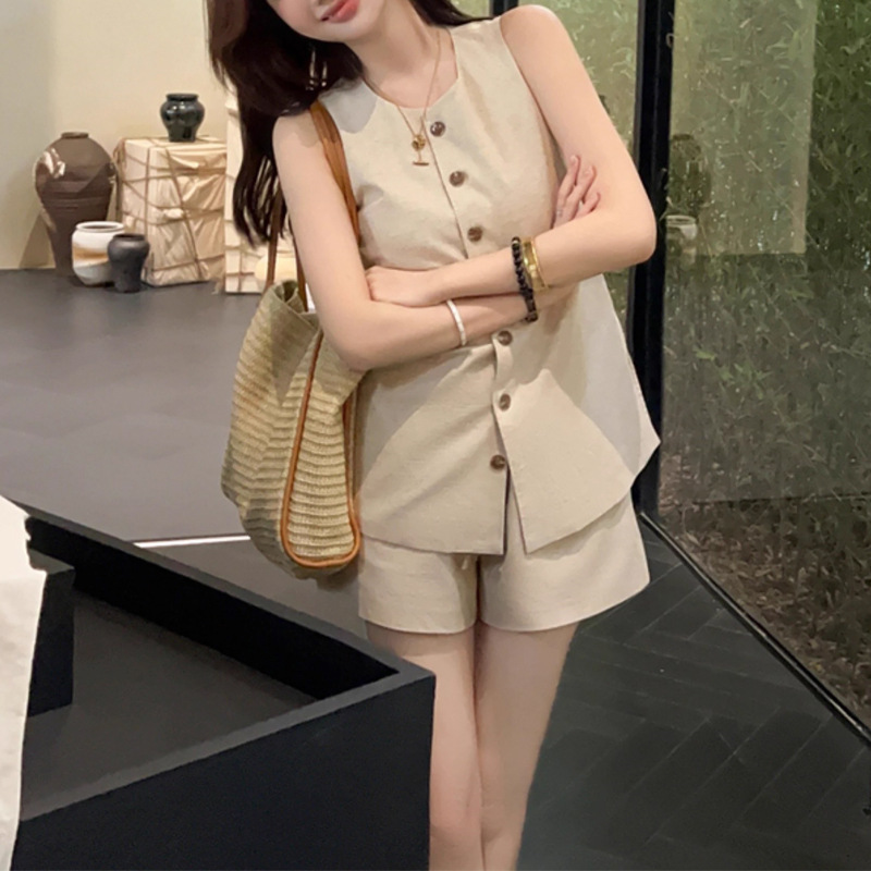 随心玩家老钱风慵懒马甲短裤两件套套装女夏穿搭一整套