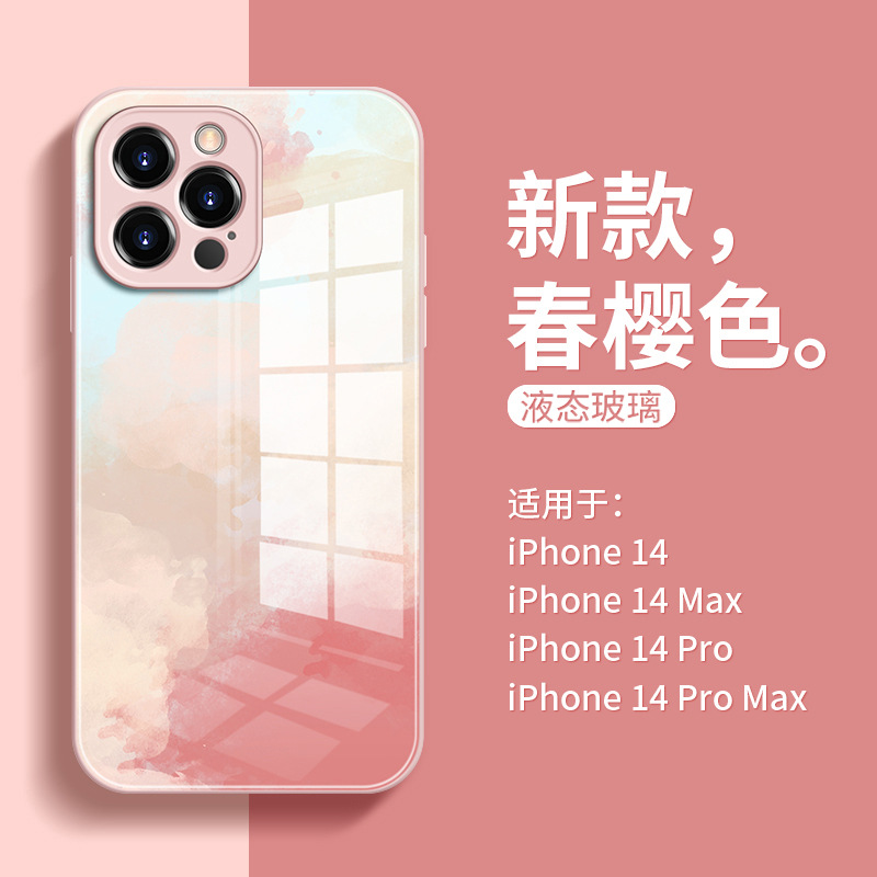 渲染水彩适用于苹果14手机壳小众新款春樱色iphone13玻璃ins风12P
