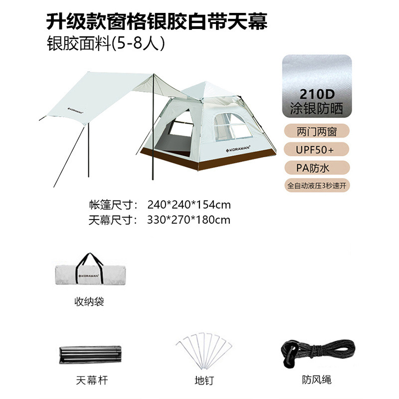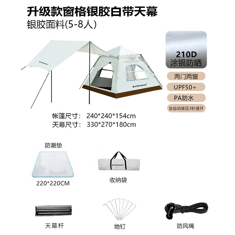 - [升级款5-8人]银胶白带天幕帐篷[遮阳款]