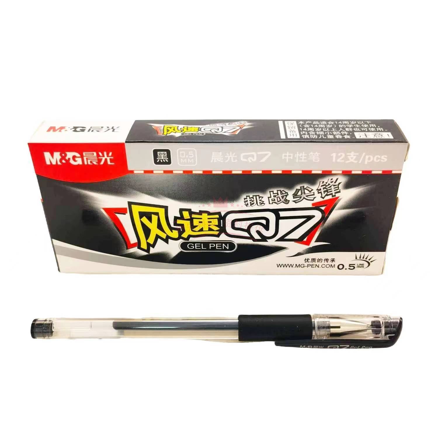 晨光文具经典风速Q7中性笔0.5子弹头日常办公会议书写通用签字笔老师医生用黑色盖帽水性走珠笔