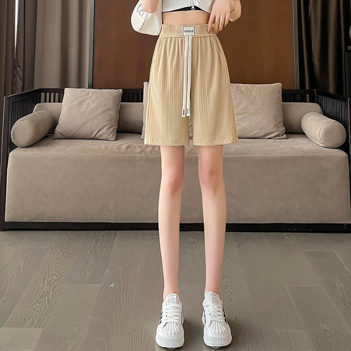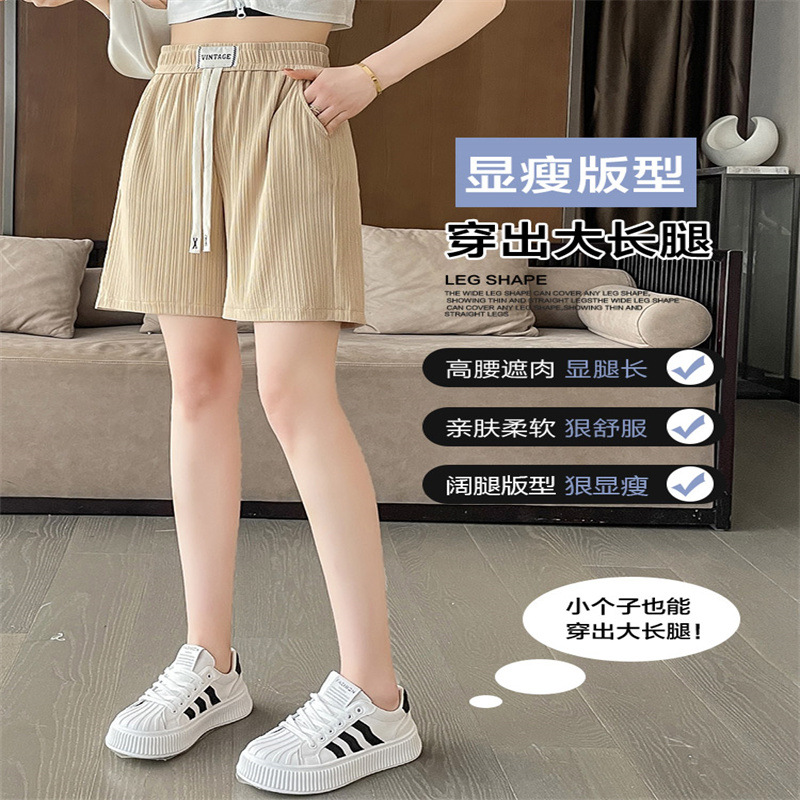 冰丝短裤女夏季薄款新款爆款高腰宽松阔腿夏天休闲五分中裤子