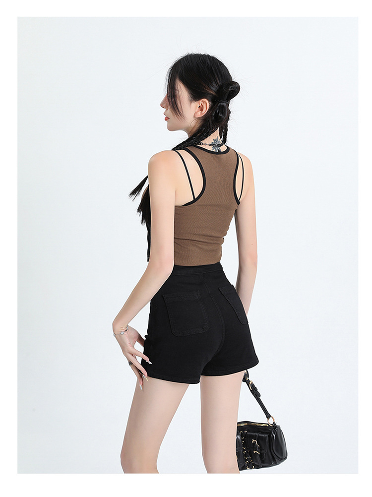 706夏季新款黑色高腰牛仔短裤女外穿弹力高腰宽松显瘦短裤