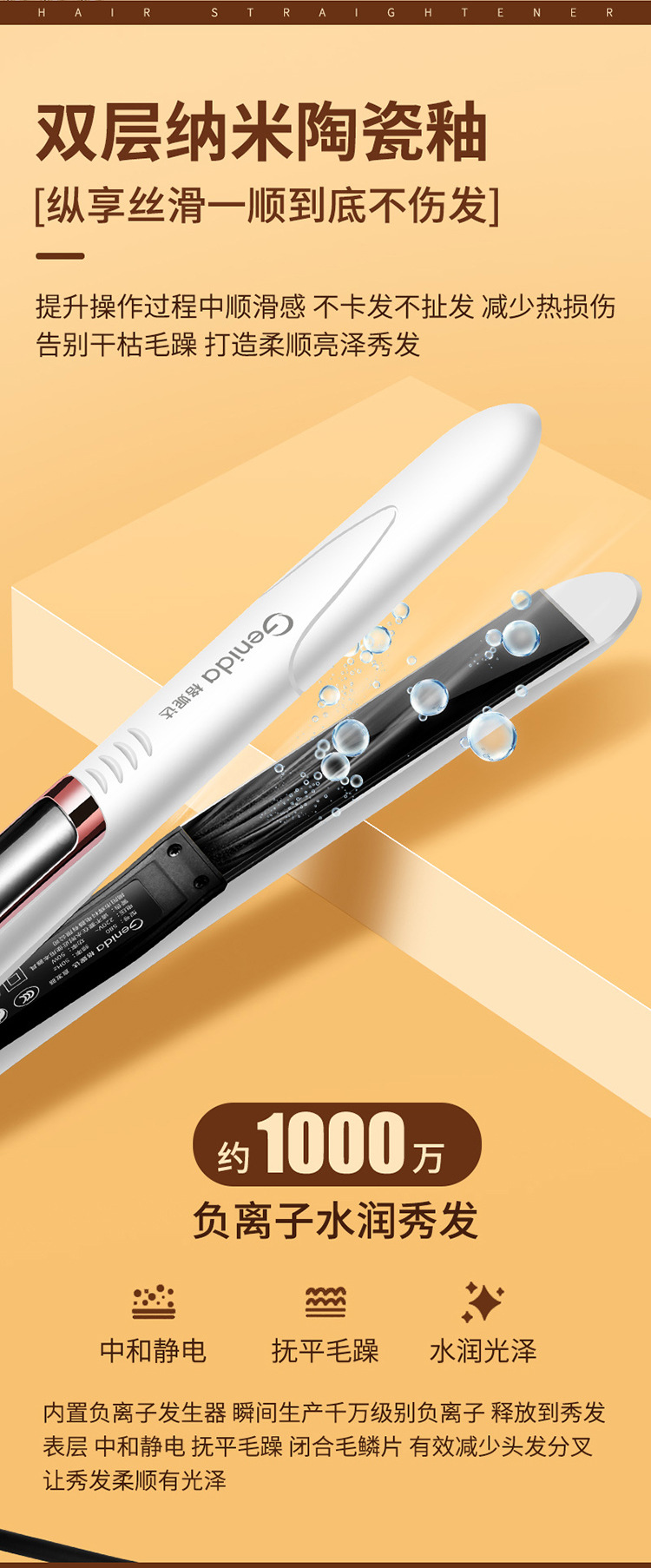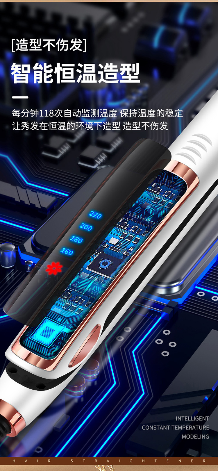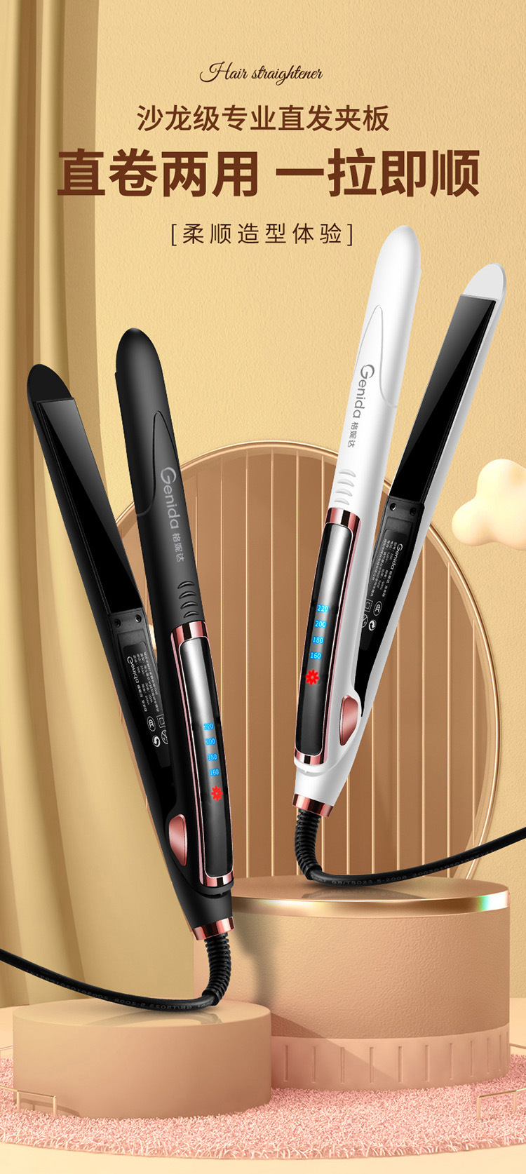 直发器卷发棒家用发廊直发夹板多档调节负离子烫发夹