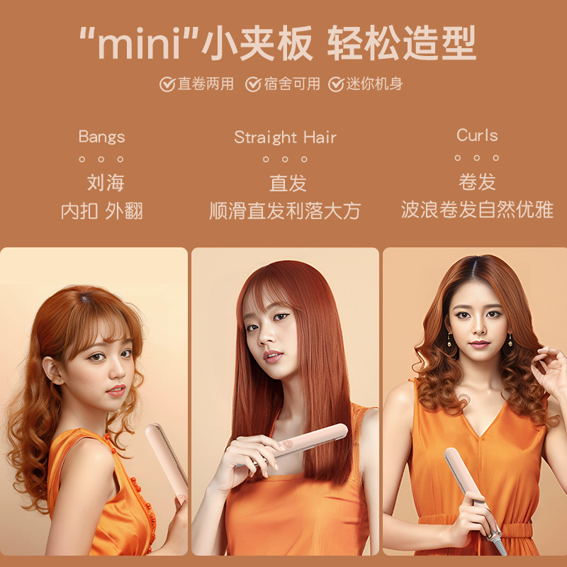 小型夹板直卷两用定型不伤发卷发棒负离子拉直板烫发神器
