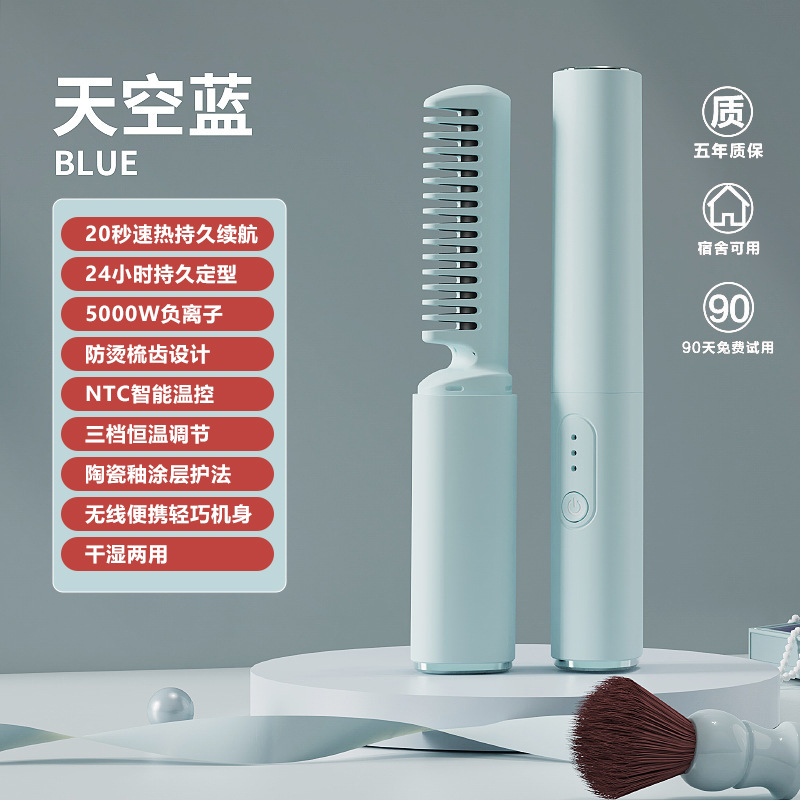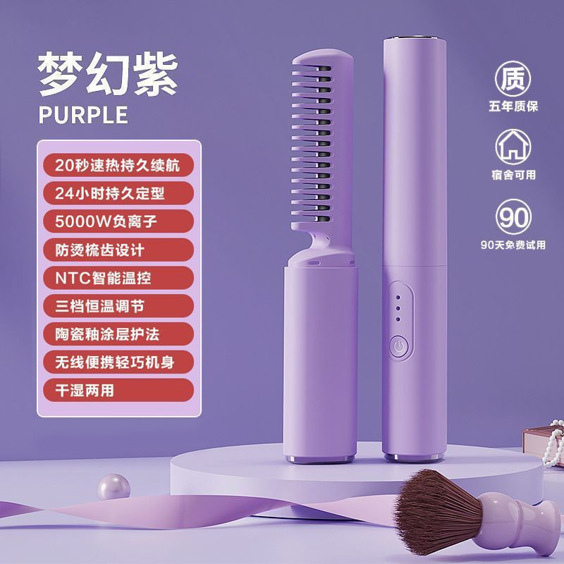 便携无线直发梳卷直两用旅行充电直发器迷你美发梳头发内扣卷梳子
