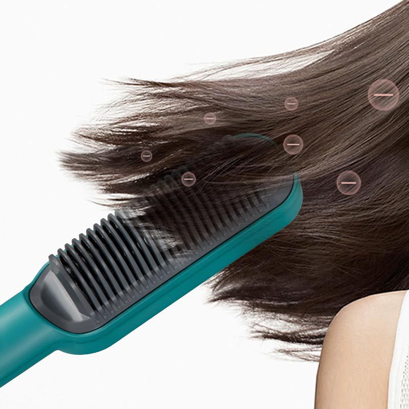电热梳带转尾直发器直发梳负离子速热可调温不伤发便携卷发棒