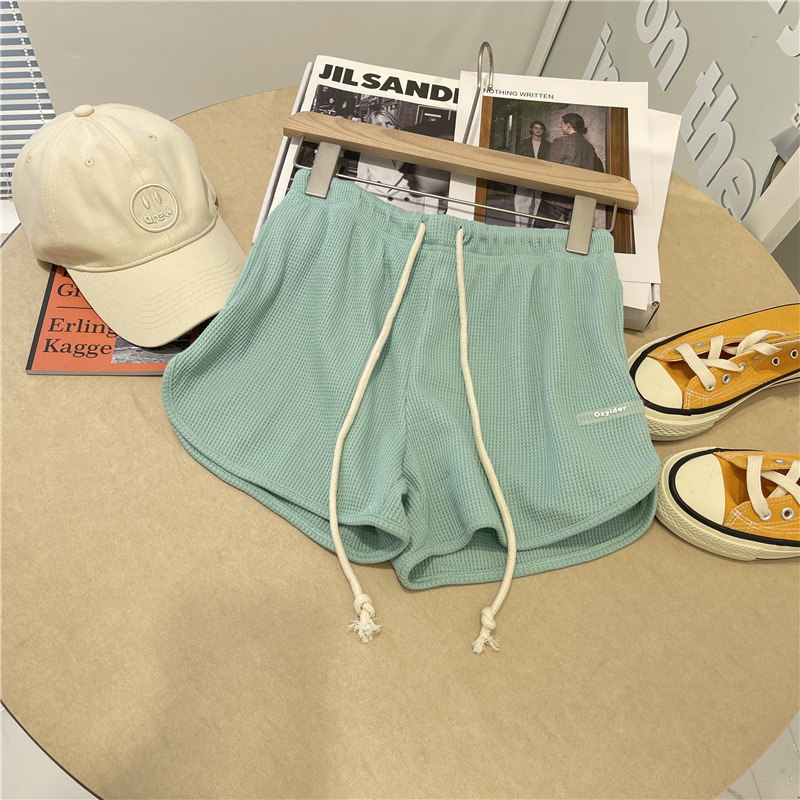 新款薄荷绿休闲短裤女夏季薄款网红款宽松阔腿纯色运动热裤潮