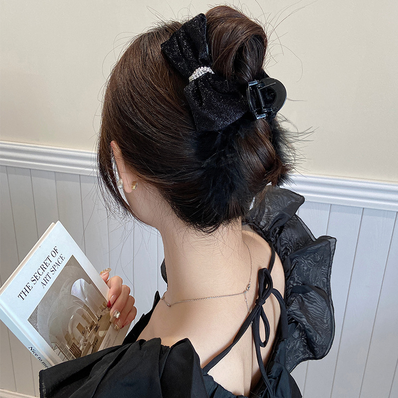 羽毛绒蝴蝶结抓夹发饰公主头发夹女后脑勺大号鲨鱼夹子头饰发卡子