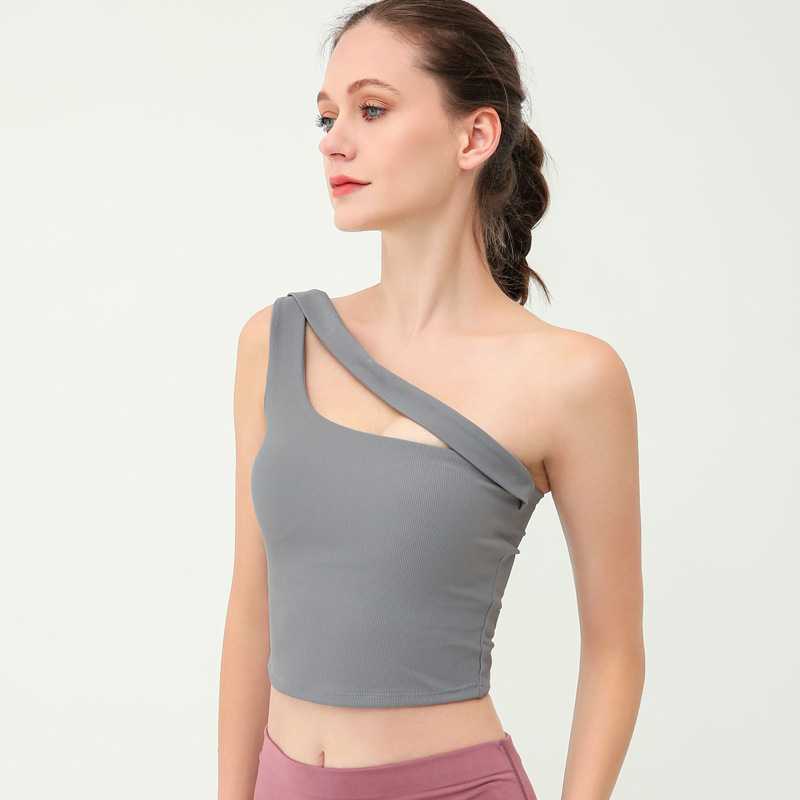 外贸不规则坑条瑜伽上衣女吸湿排汗健身跑步舞蹈运动背心女含胸垫