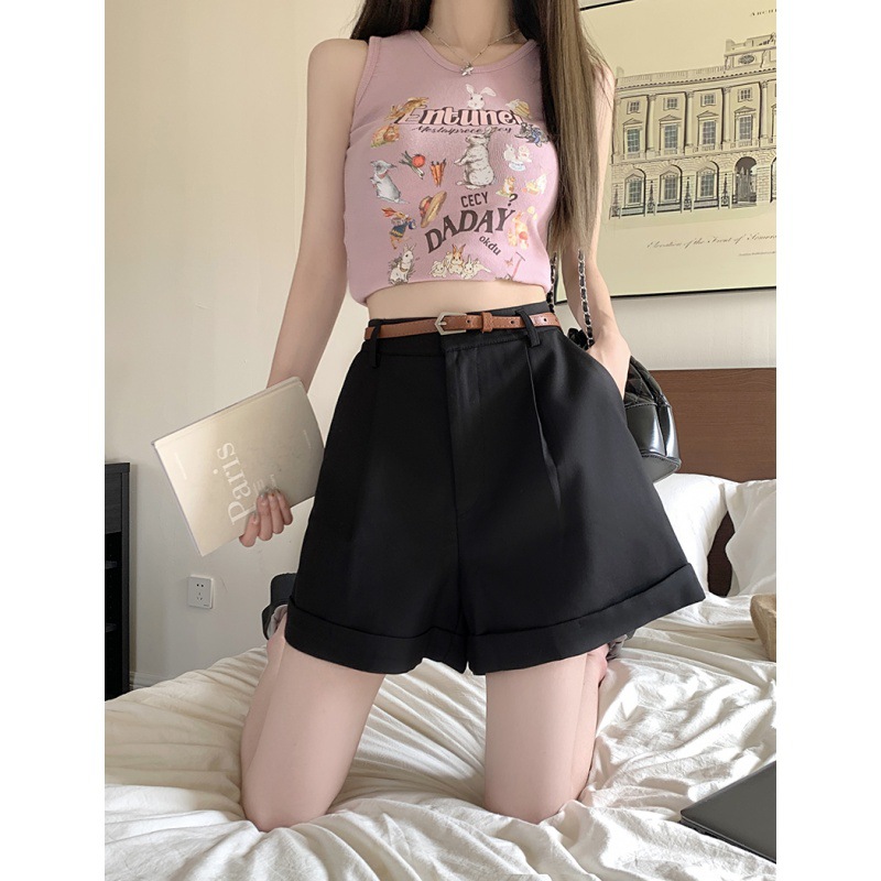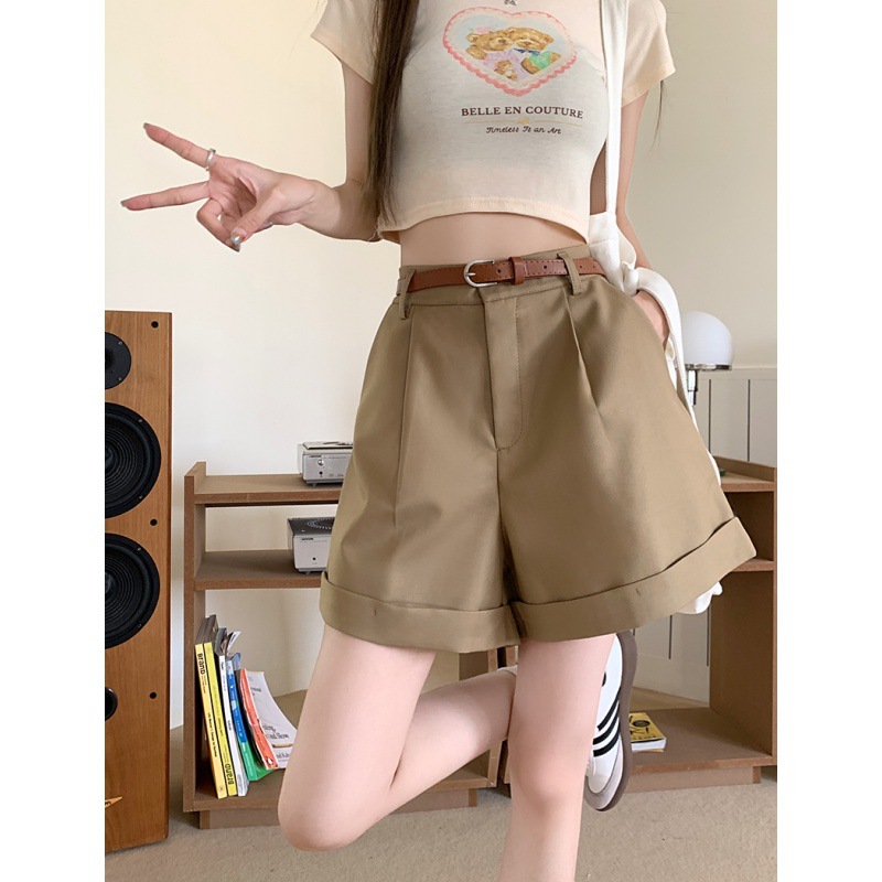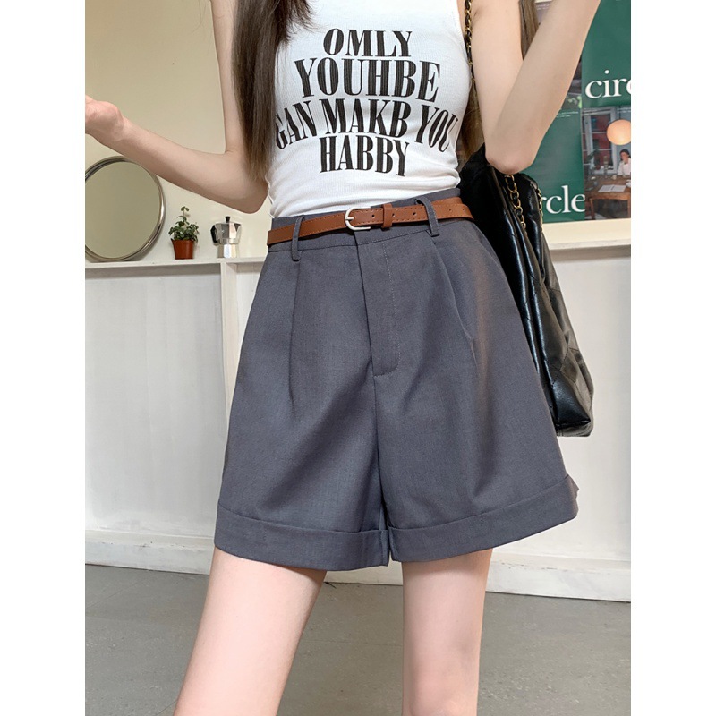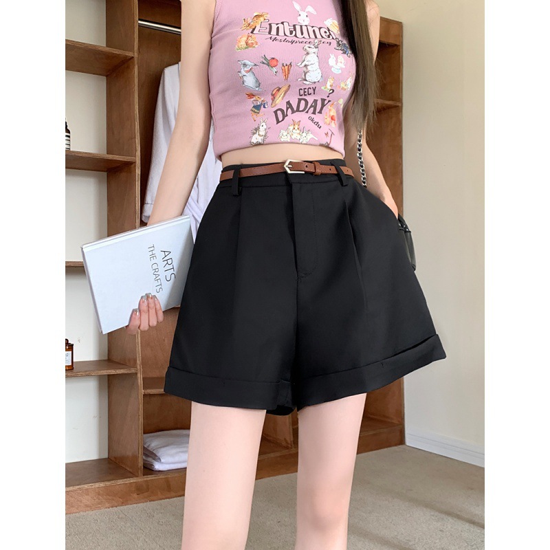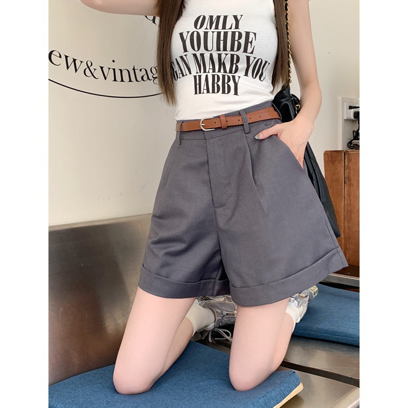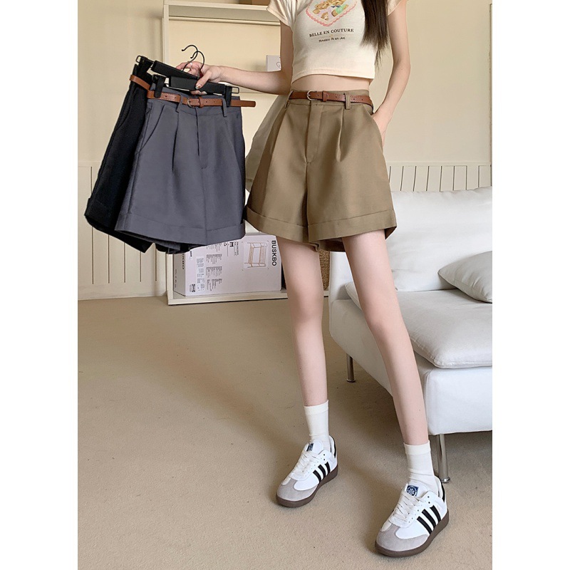 实拍夏新款休闲五分西装短裤女韩版百搭宽松A字卷边阔腿裤3色