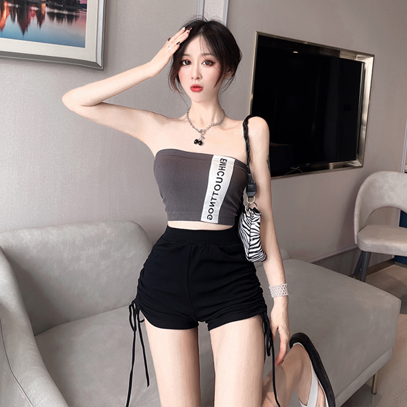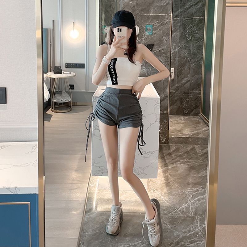 高腰黑色抽绳运动短裤女秋季外穿辣妹设计感小众超短裤休闲热裤子