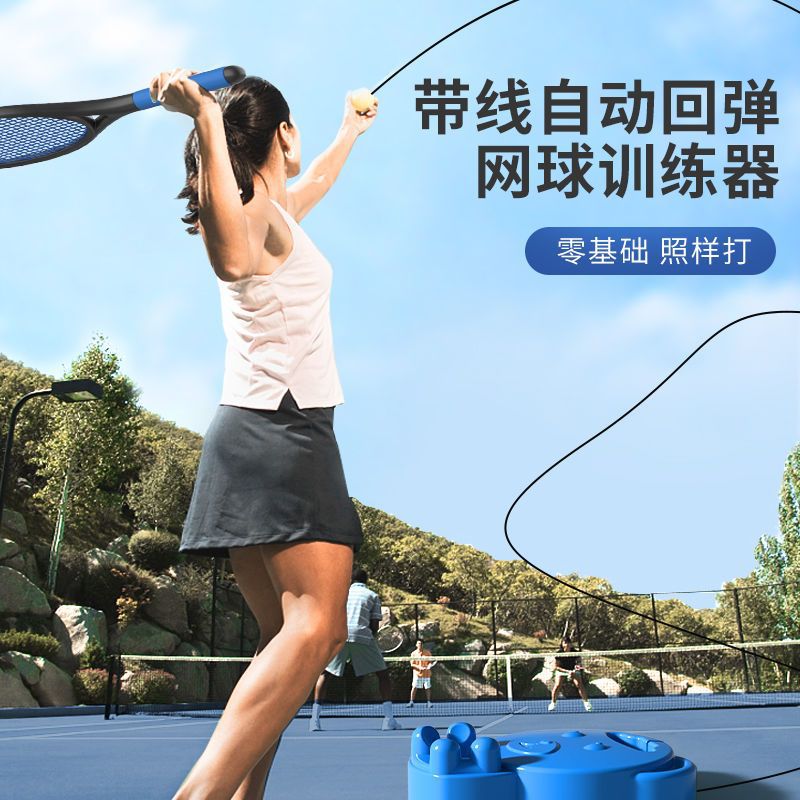 自动回弹网球训练器单人球拍自练器初学者一个人网球拍