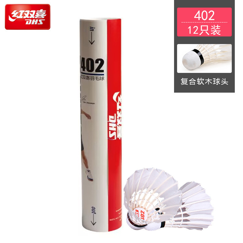 红双喜羽毛球耐打王一桶训练比赛402 402A软木球头不易烂