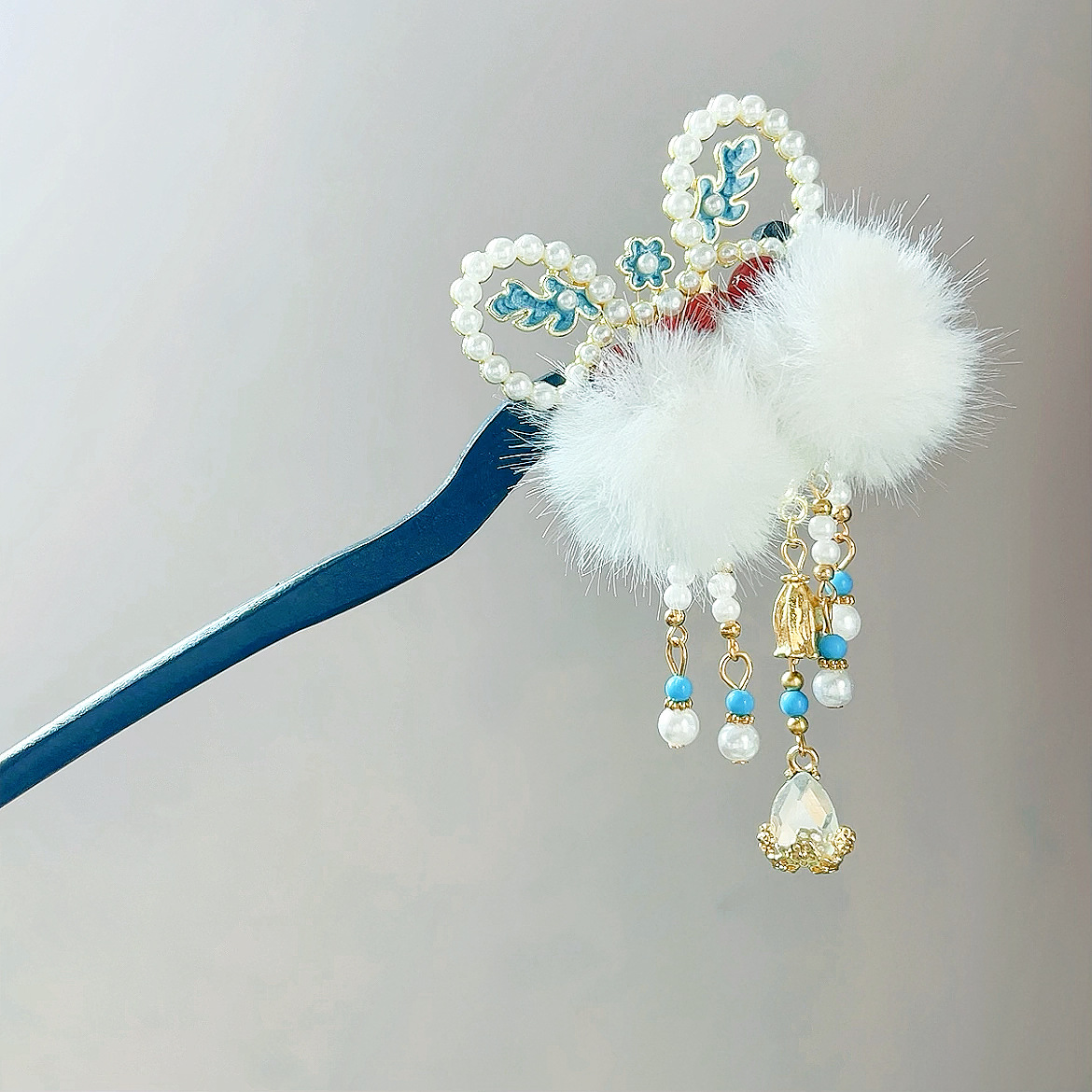 毛绒木簪高级感流苏步摇发簪簪子新中式古风喜庆挽发发钗