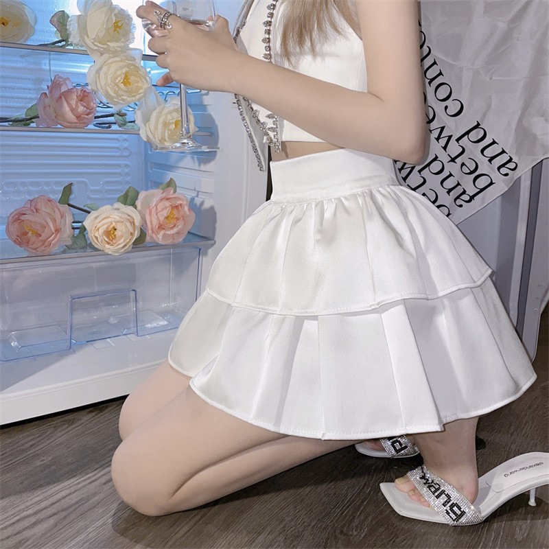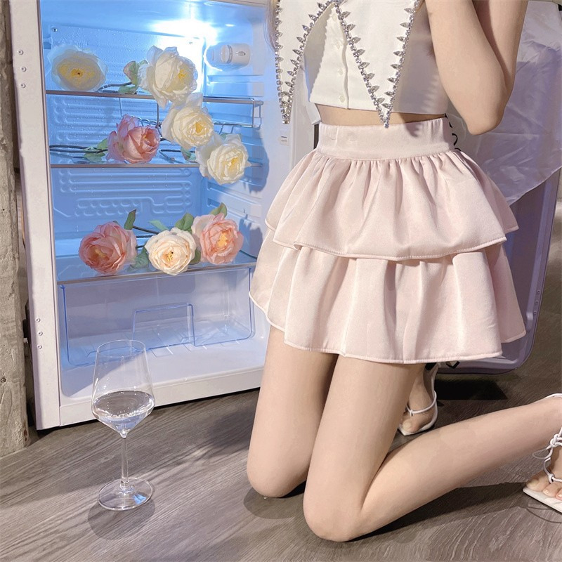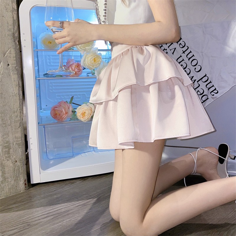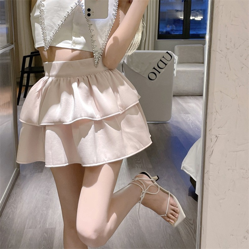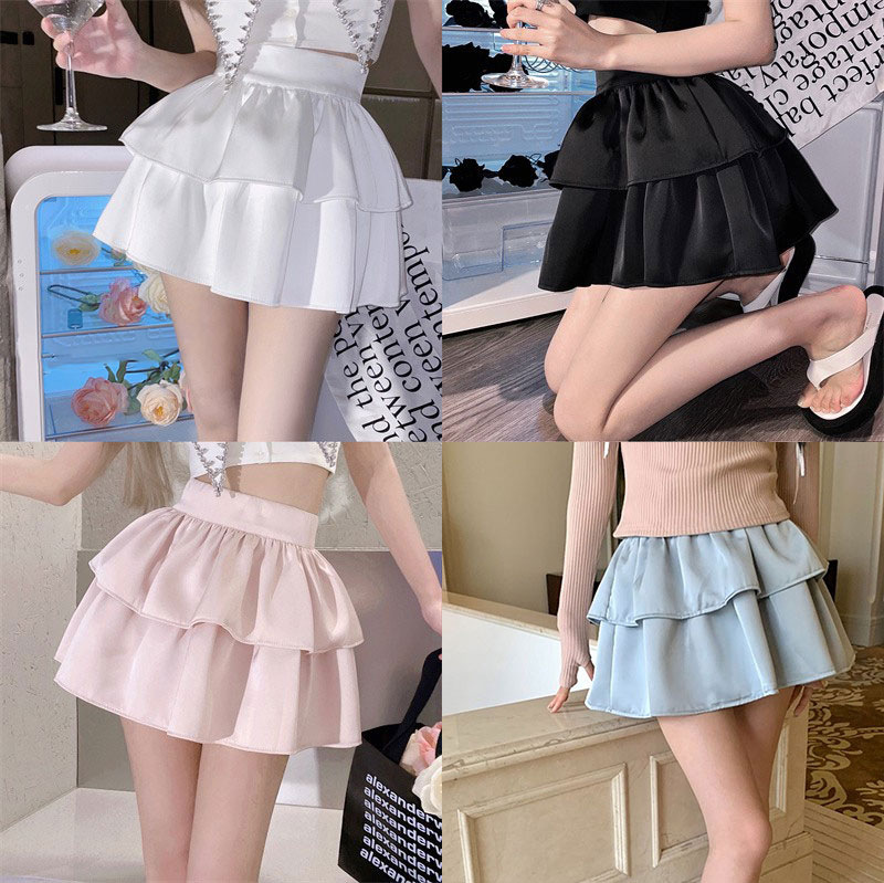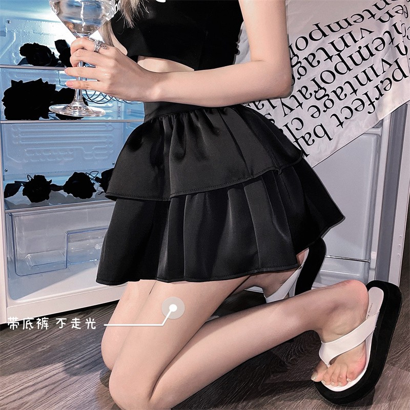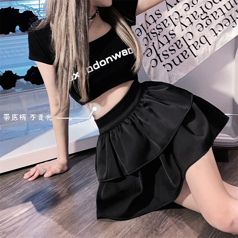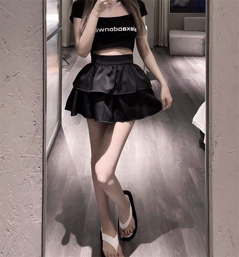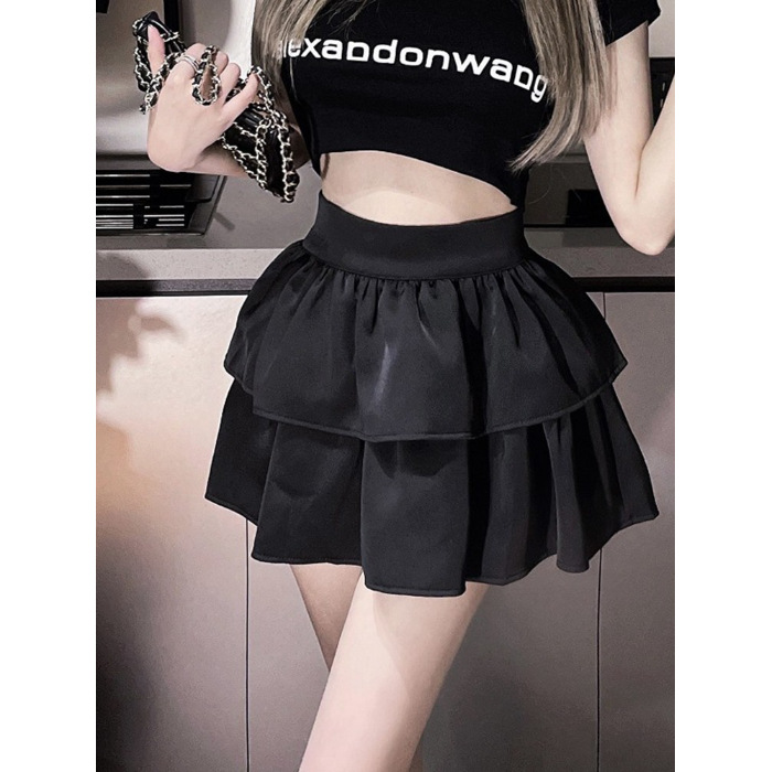 梨形身材黑色a字半身裙女士夏季高腰显瘦短裙小个子蓬蓬蛋糕裙子