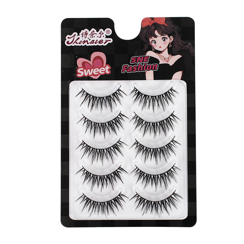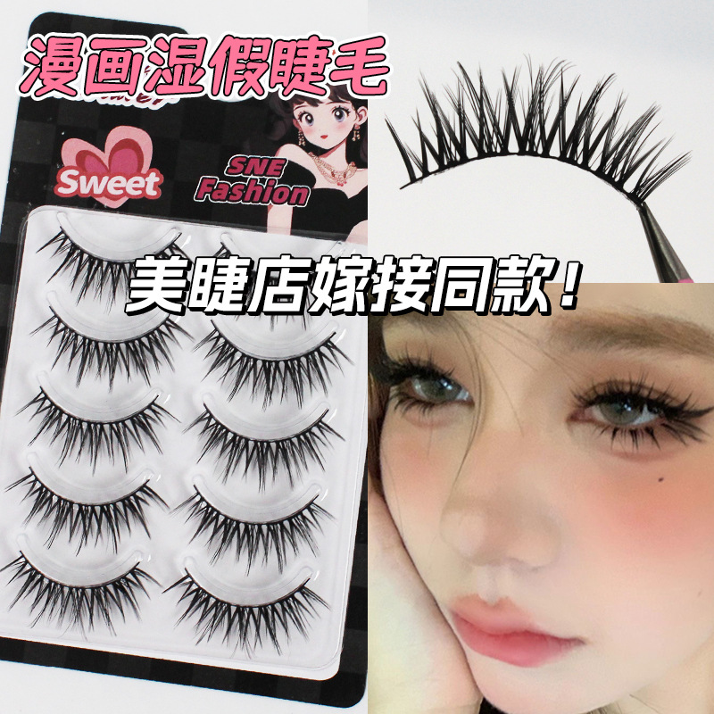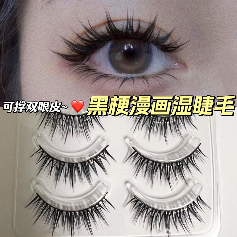 单眼皮必备!空气感漫画湿睫毛美睫店同款硬梗假睫毛一片式浓密卷