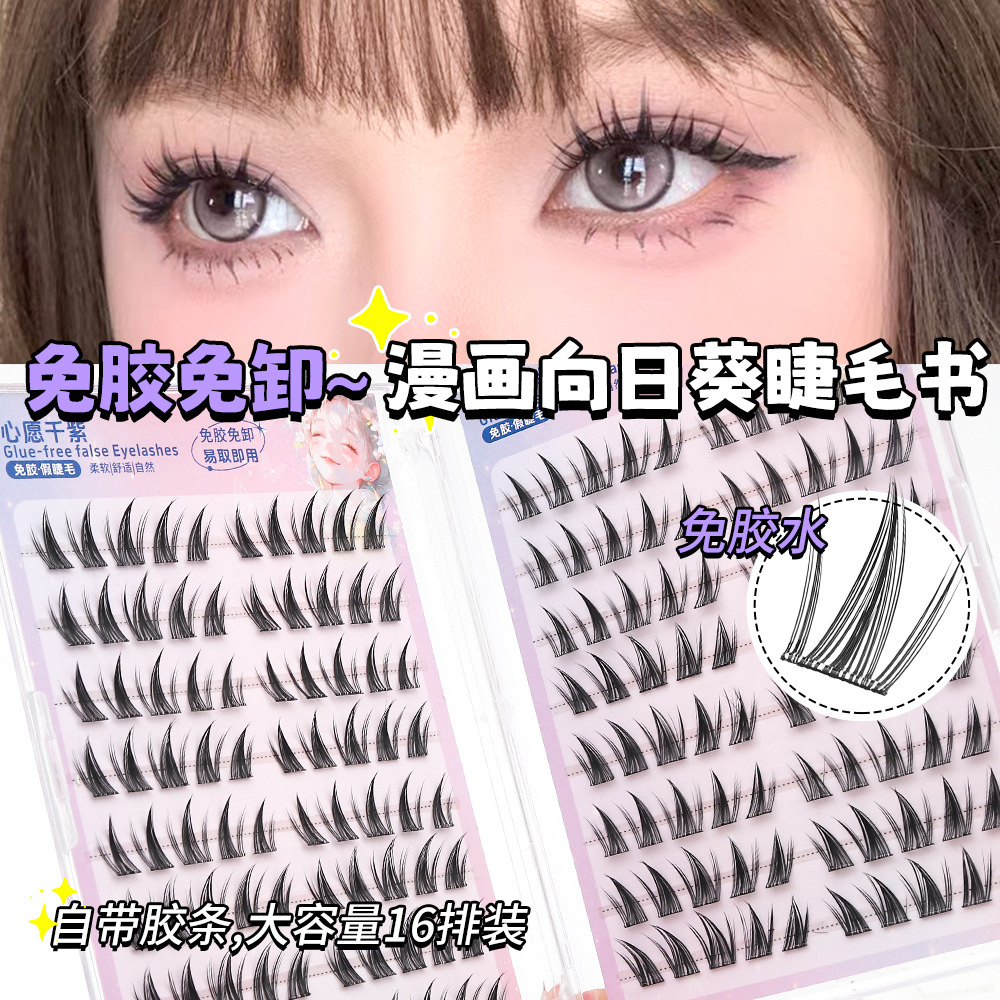 免胶向日葵睫毛书三部曲假睫毛懒人分段单簇自然浓密
