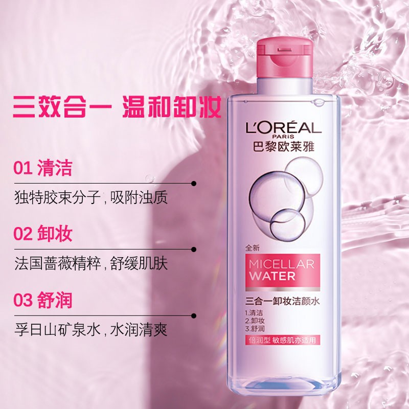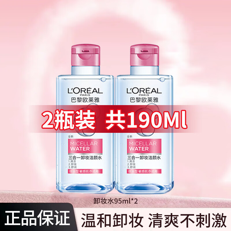 卸妆水三合一卸妆洁颜水倍润型95ml*2深层清洁温和卸妆