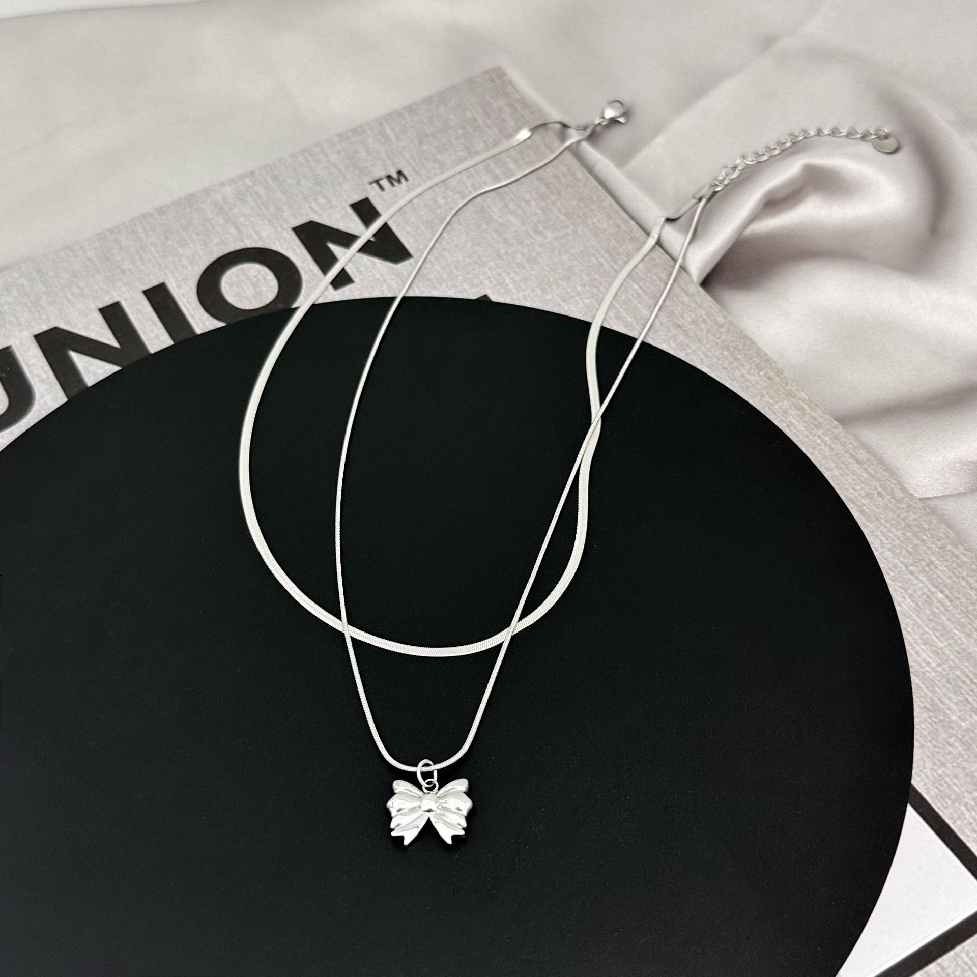 钛钢项链女蝴蝶结韩式简约风双层蛇骨锁骨链百搭街头基础款不褪色