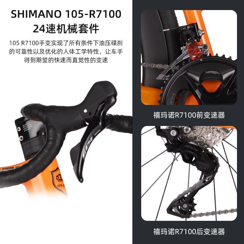 索罗门碳纤维公路车24速105小套自行车纯油碟超轻弯把竞速级单车