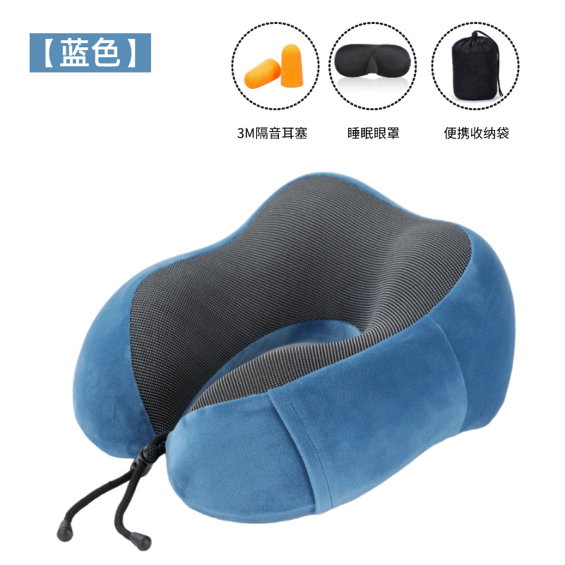 - 蓝色颈枕+眼罩+耳塞+收纳袋