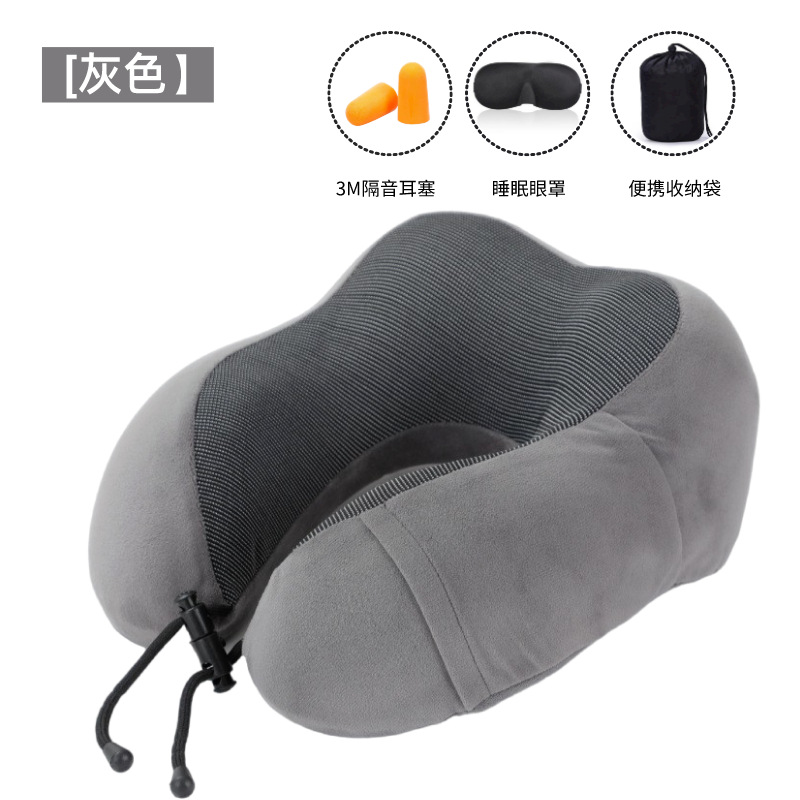 - 深灰颈枕+眼罩+耳塞+收纳袋