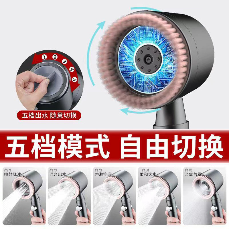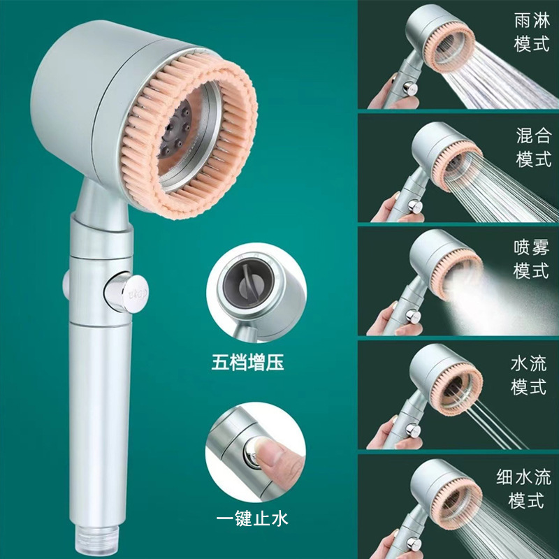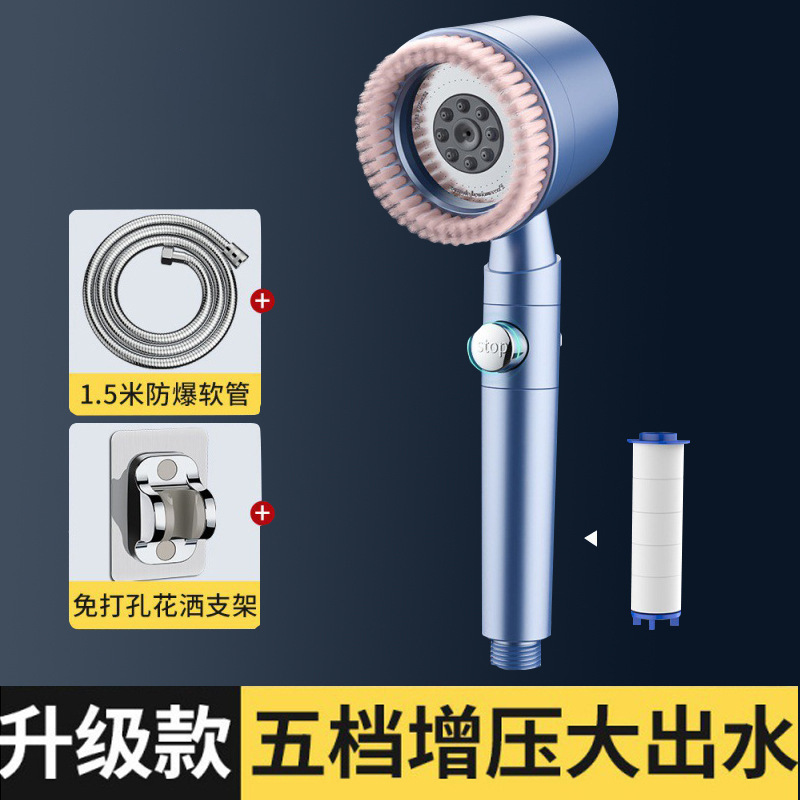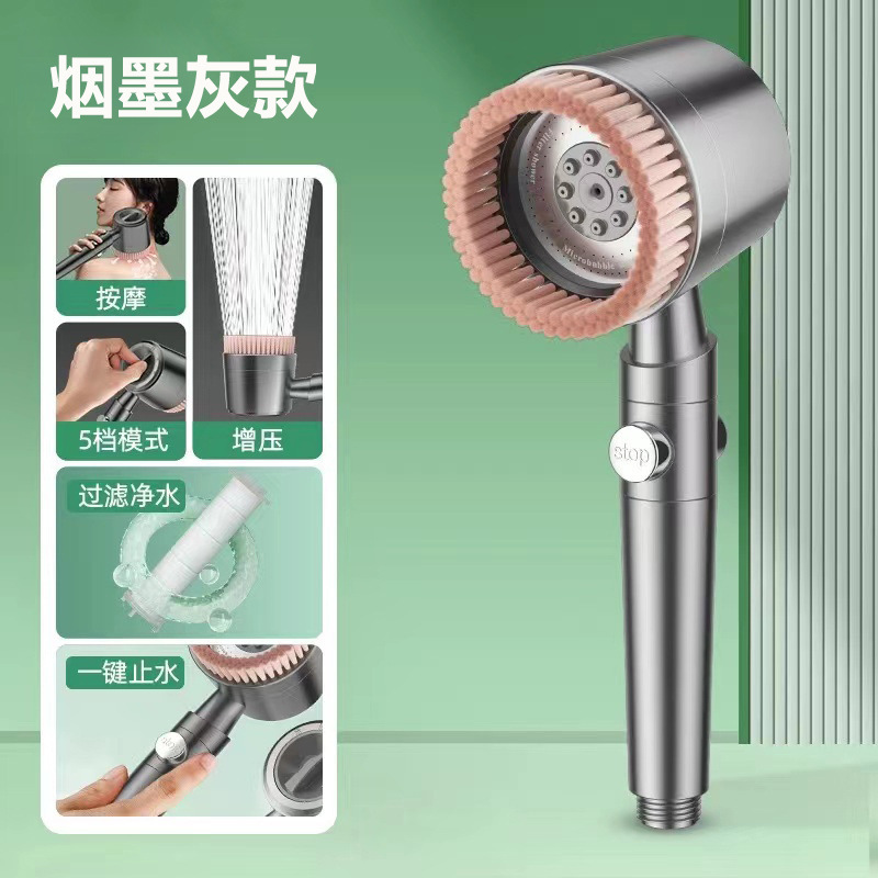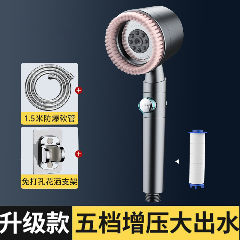 毛刷五档增压花洒家用浴室洗澡淋浴强劲增压莲蓬头过滤淋浴头