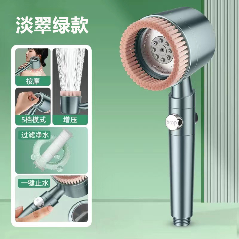 淡翠绿&毛刷五档花洒