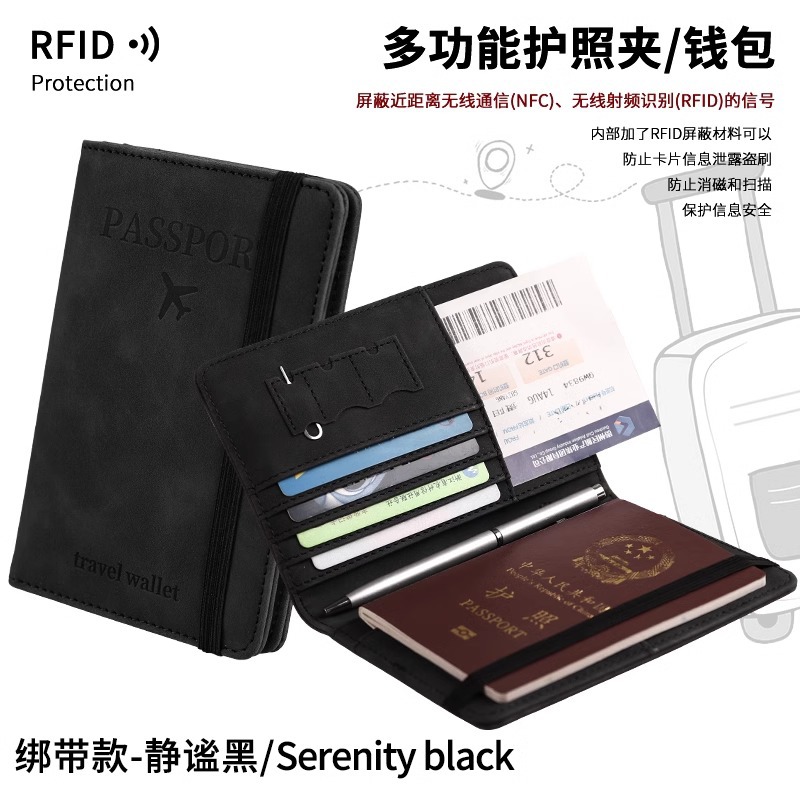 护照夹多功能证件卡包RFID防盗刷消磁旅行卡套护照收纳夹钱包