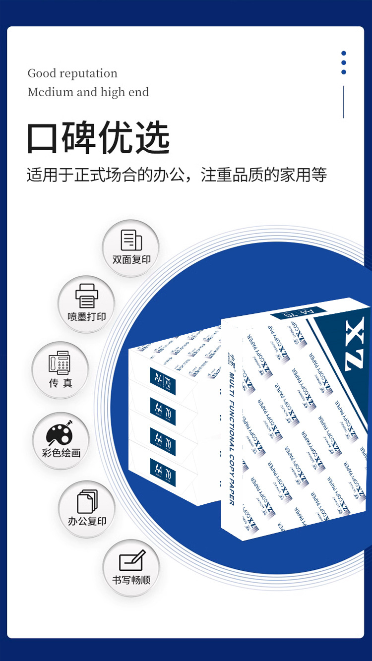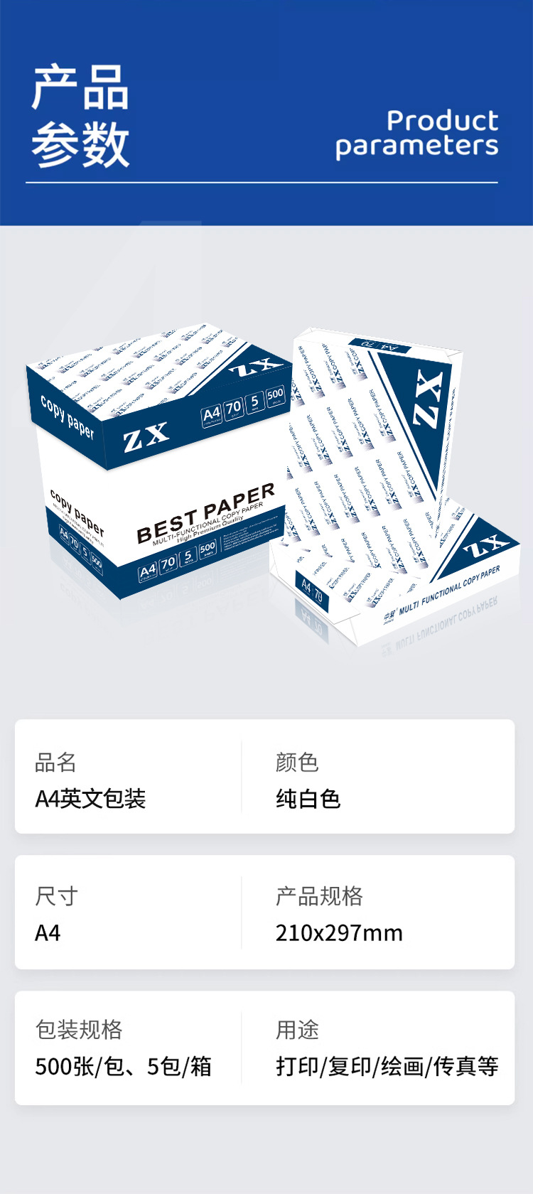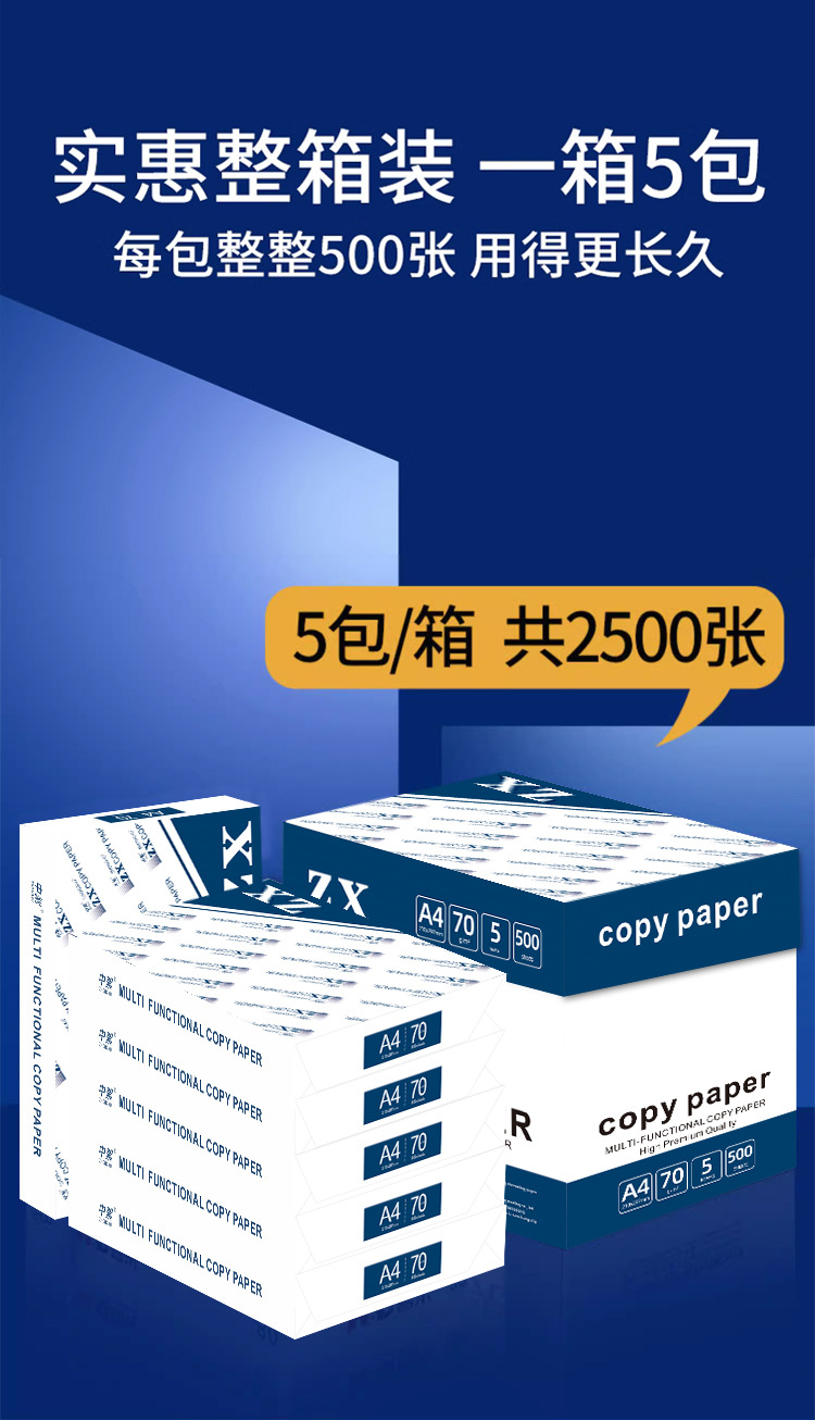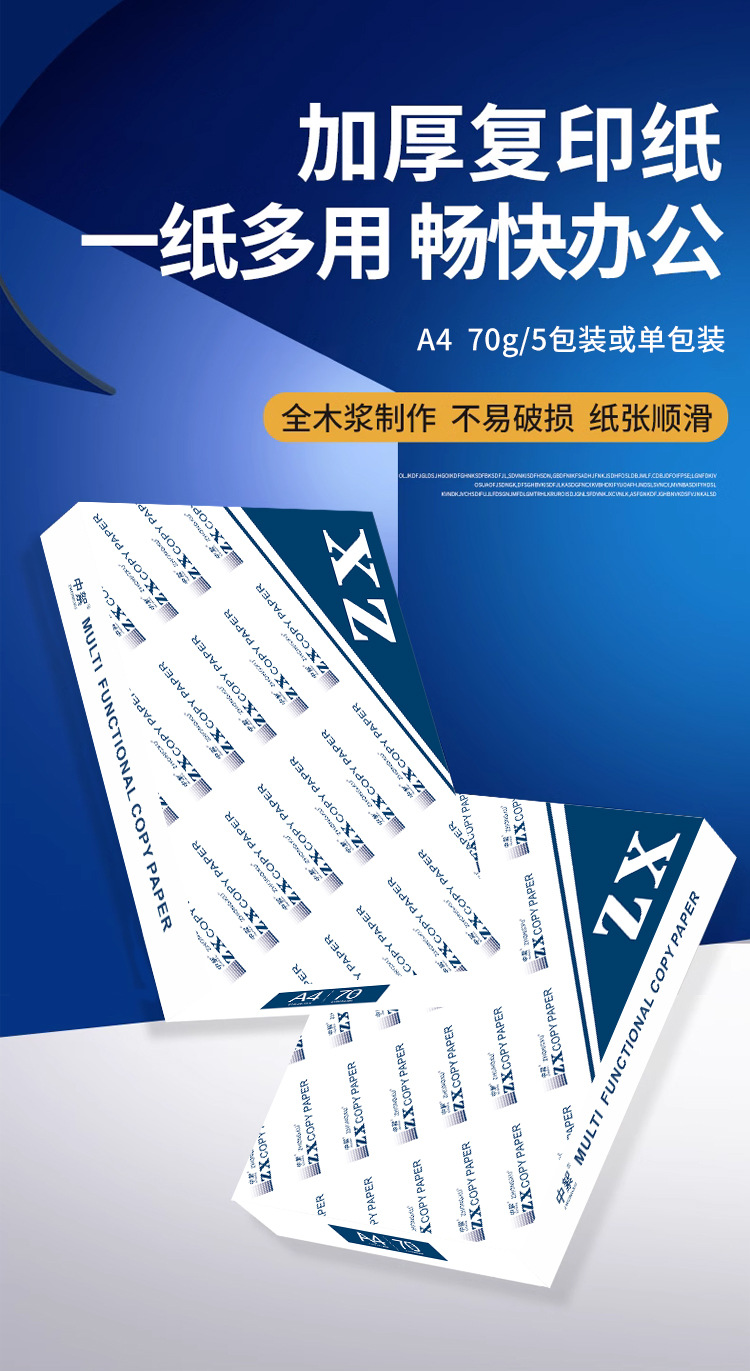 办公用a4纸整箱5包70g全木浆a4复印纸加厚a4打印纸