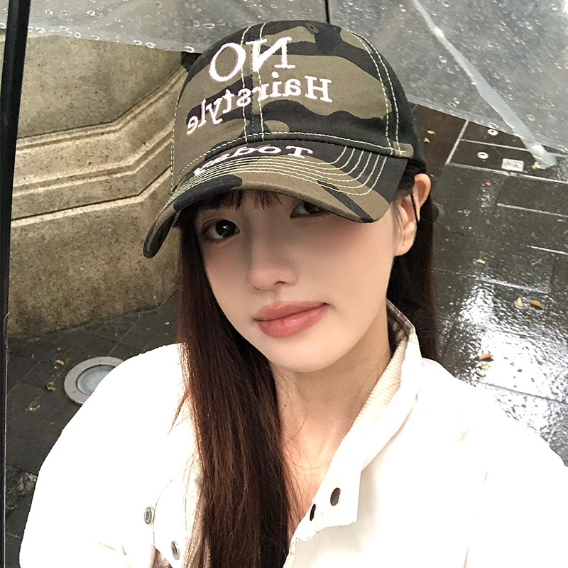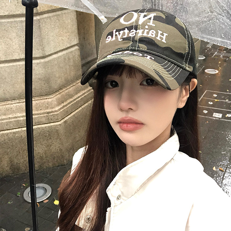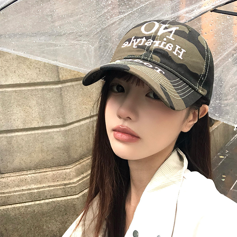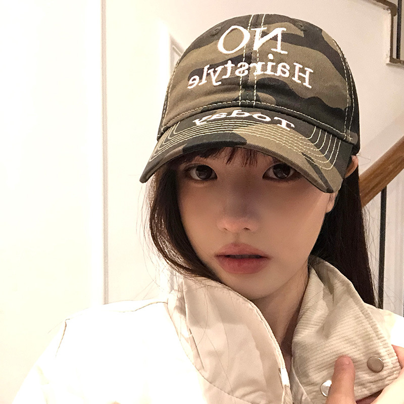 复古小众韩系迷彩撞色字母刺绣鸭舌帽女街头百搭显脸小棒球帽子潮