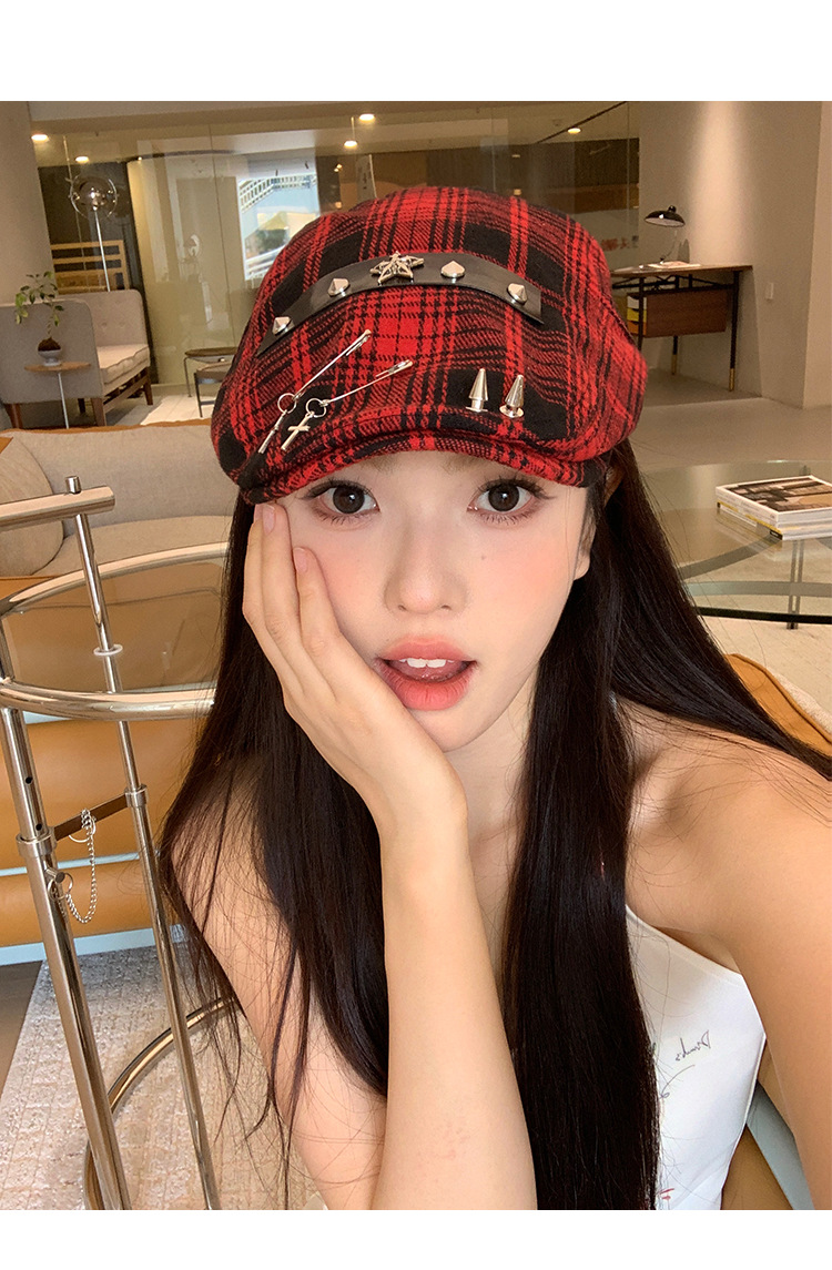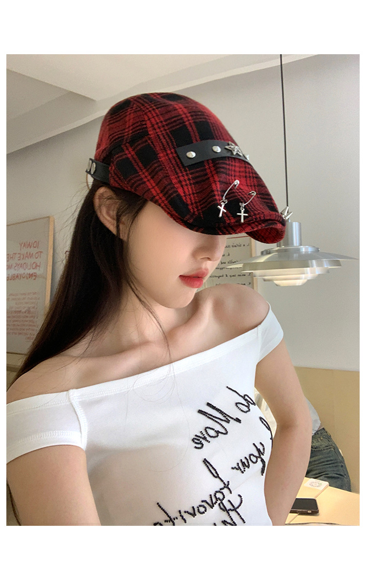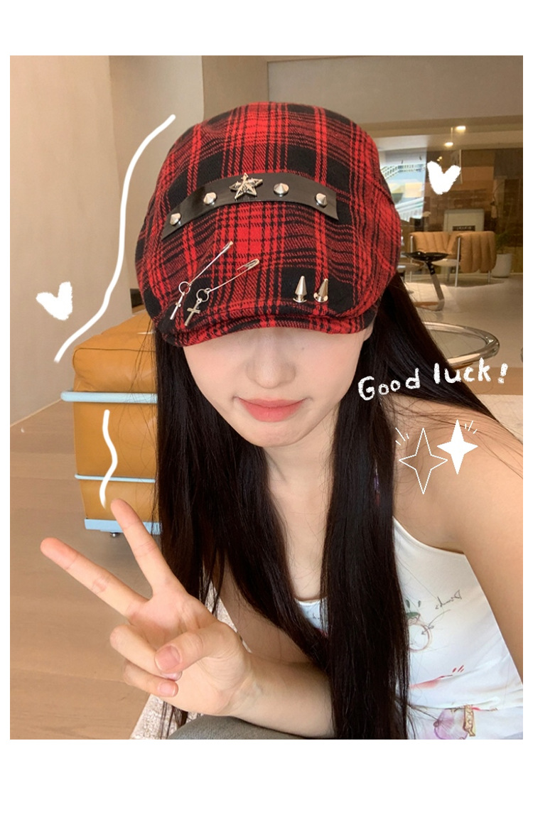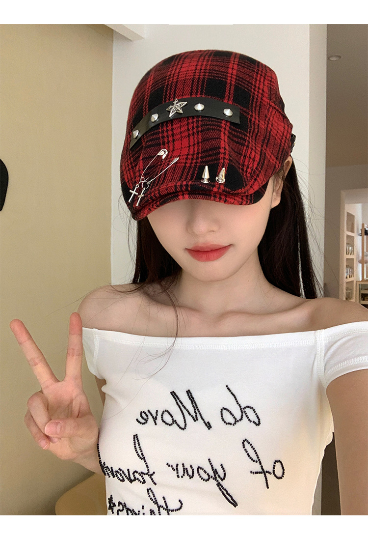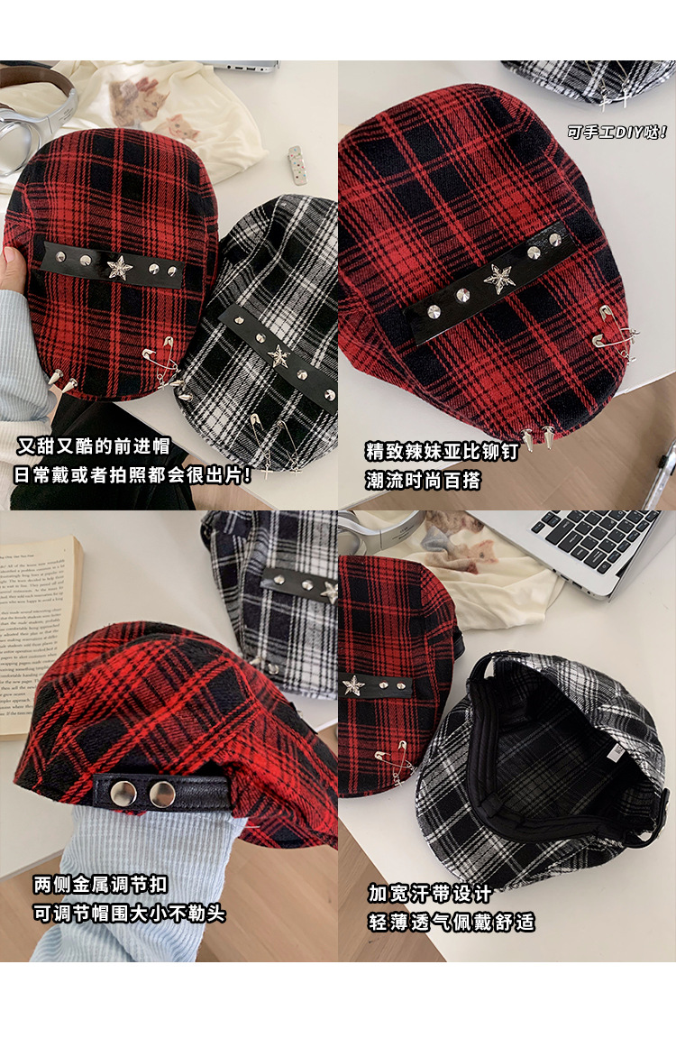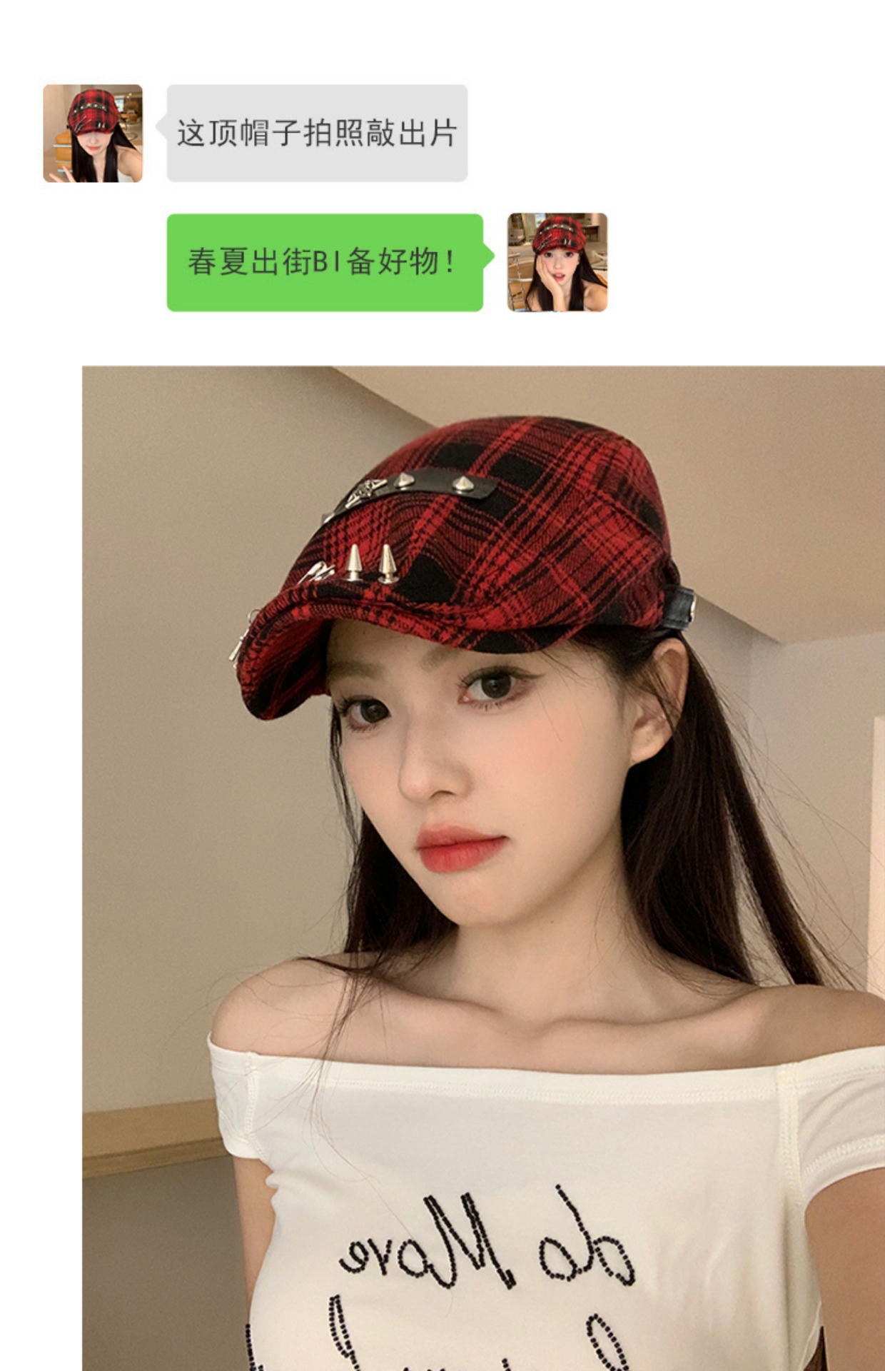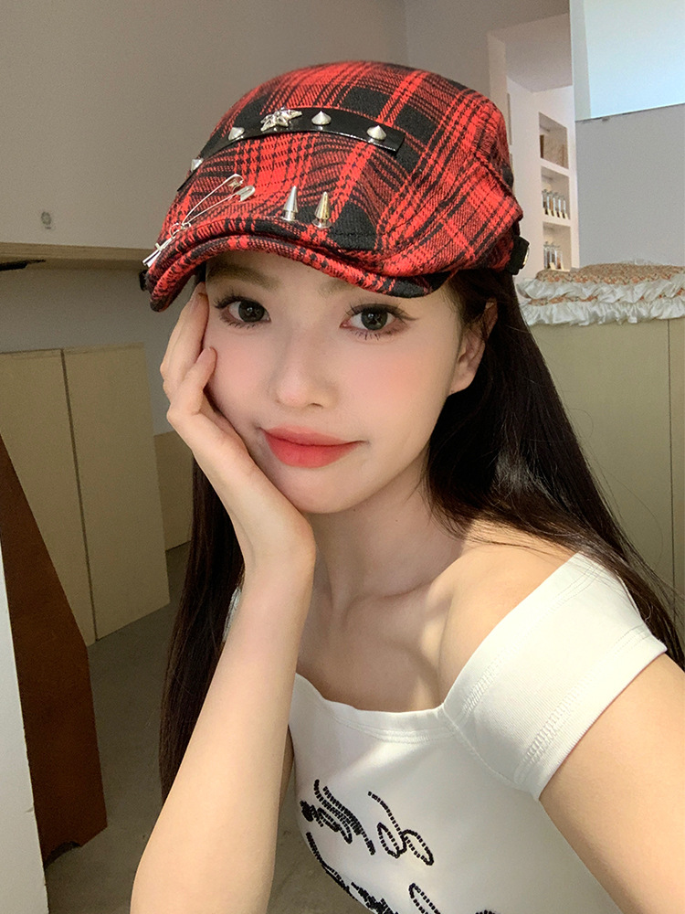 Y2K亚比风文艺复古铆钉前进帽子时尚百搭显脸小拍照出街画家帽女