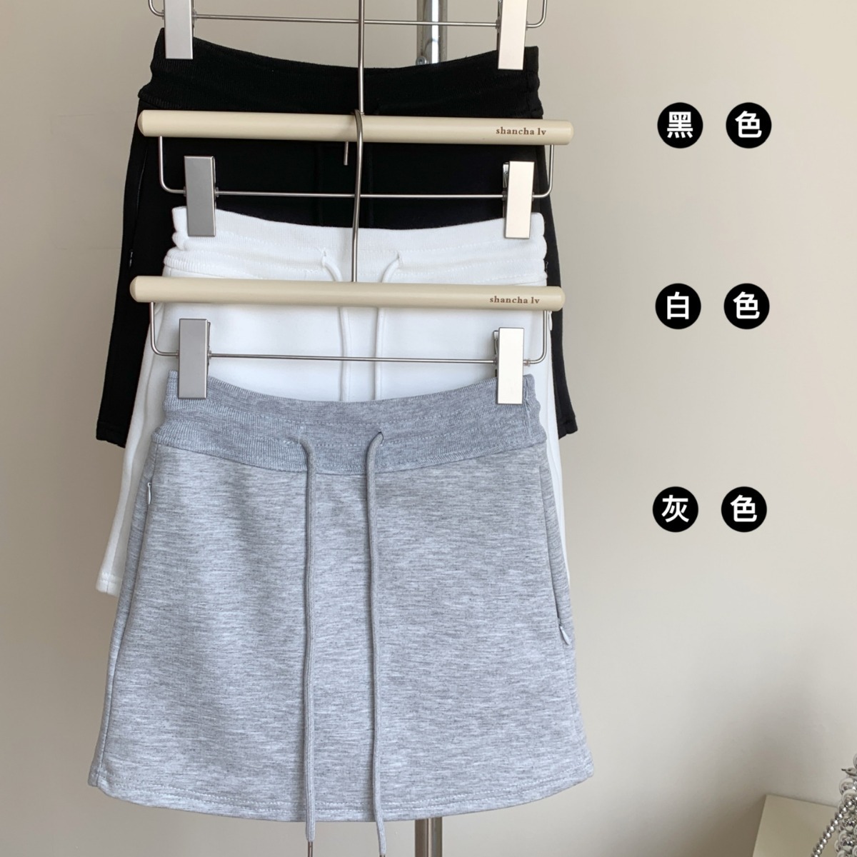 夏装新款抽绳卫衣棉A字半身裙女休闲运动短裙内含安全裤