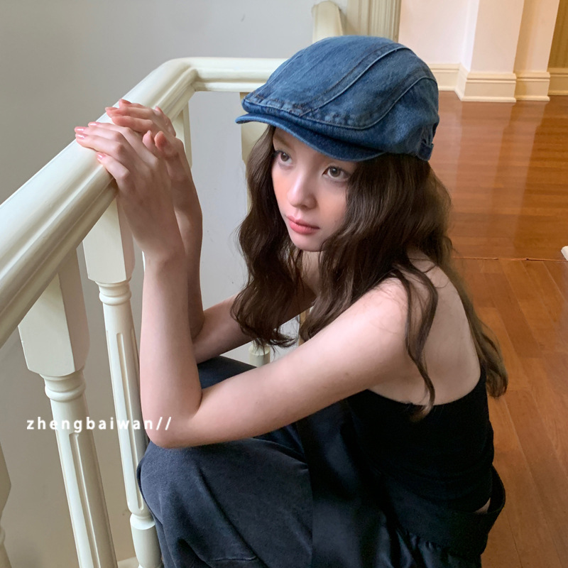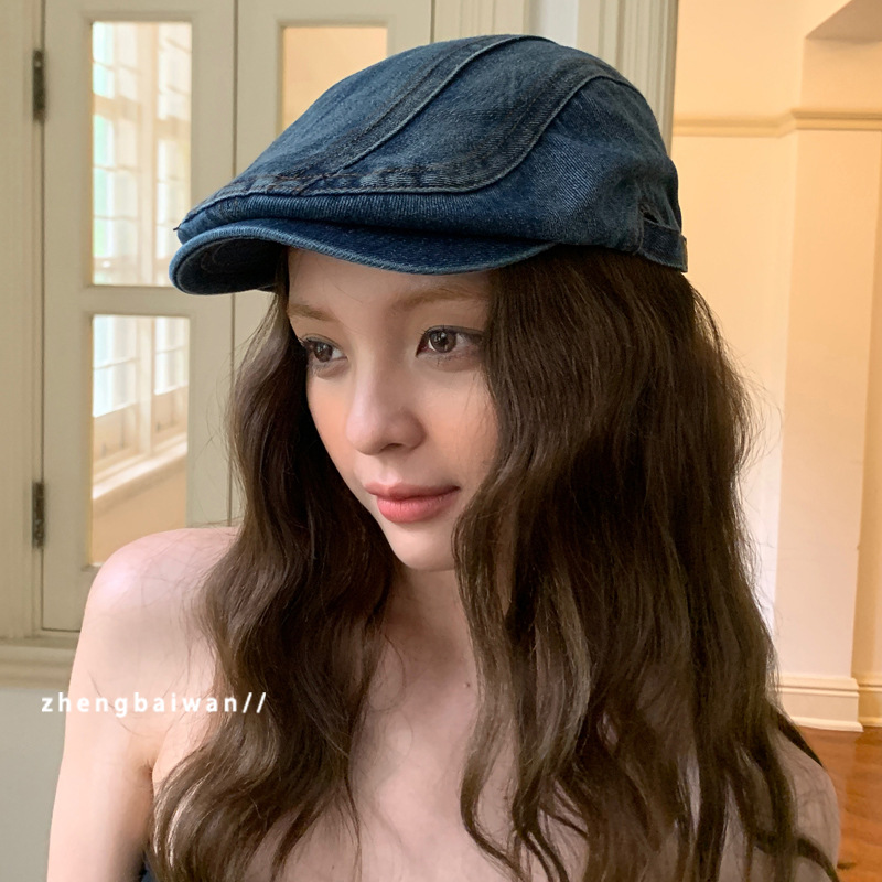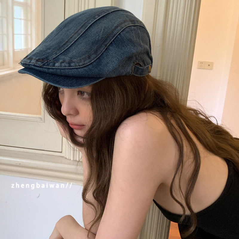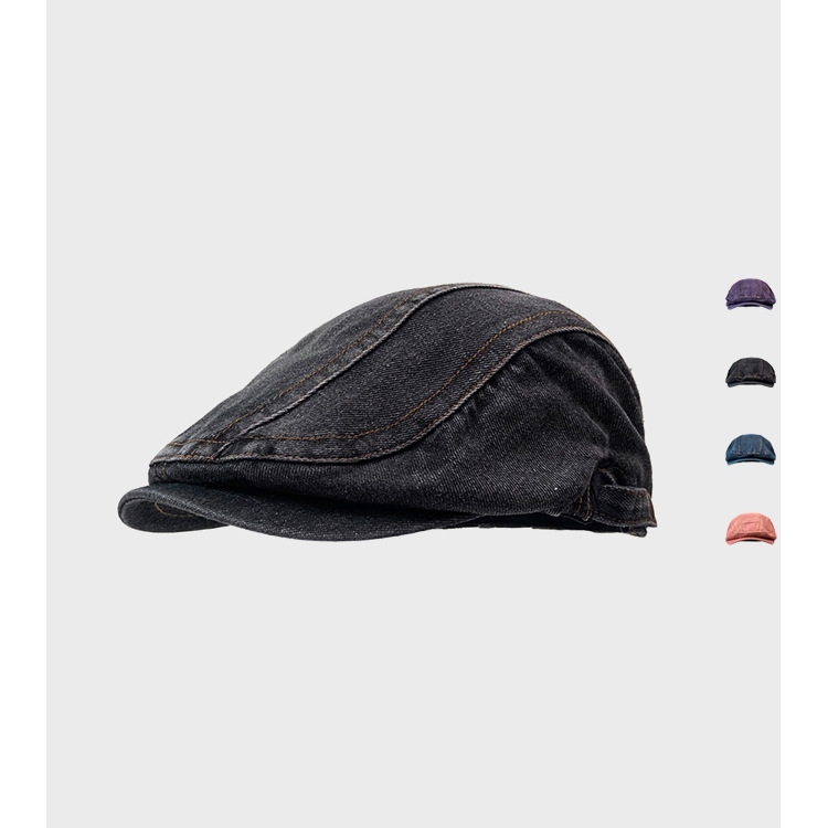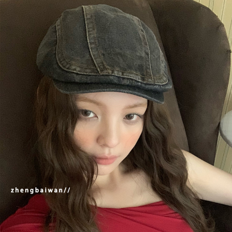 牛仔很酷 复古风牛仔前进帽时髦百搭贝雷帽做旧牛仔帽子大头围潮