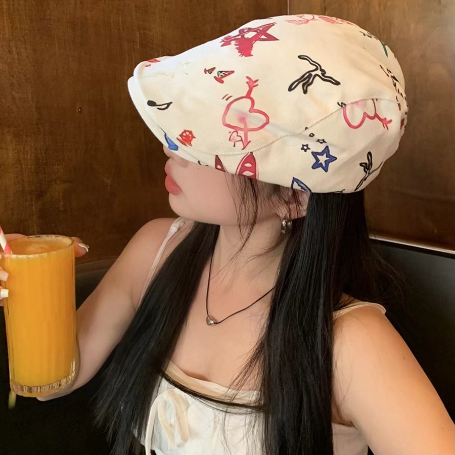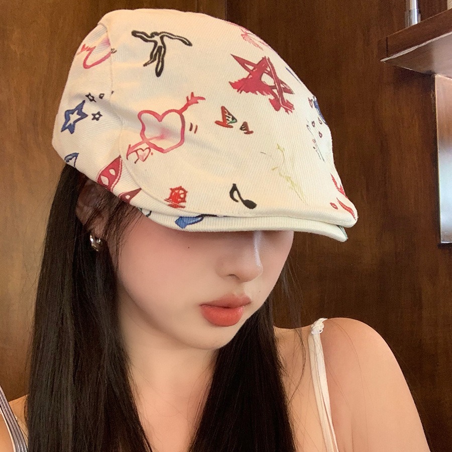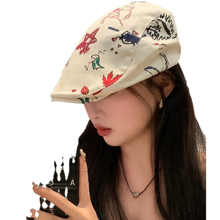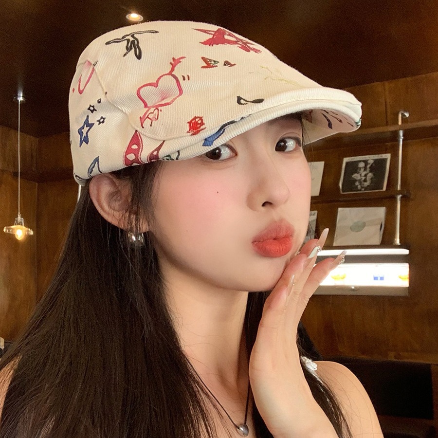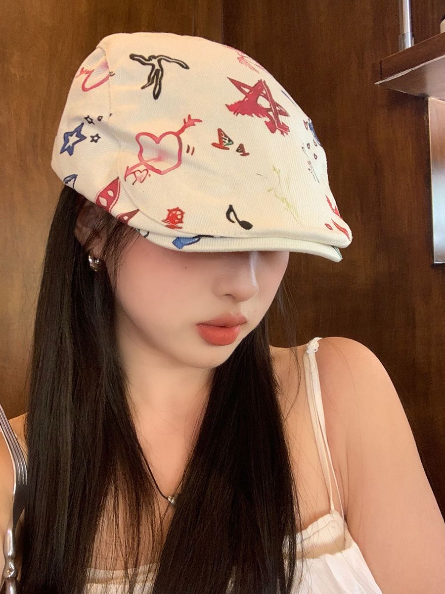 日系甜美~复古文艺前进帽女夏遮阳贝雷帽个性古童趣贝可爱鸭舌帽