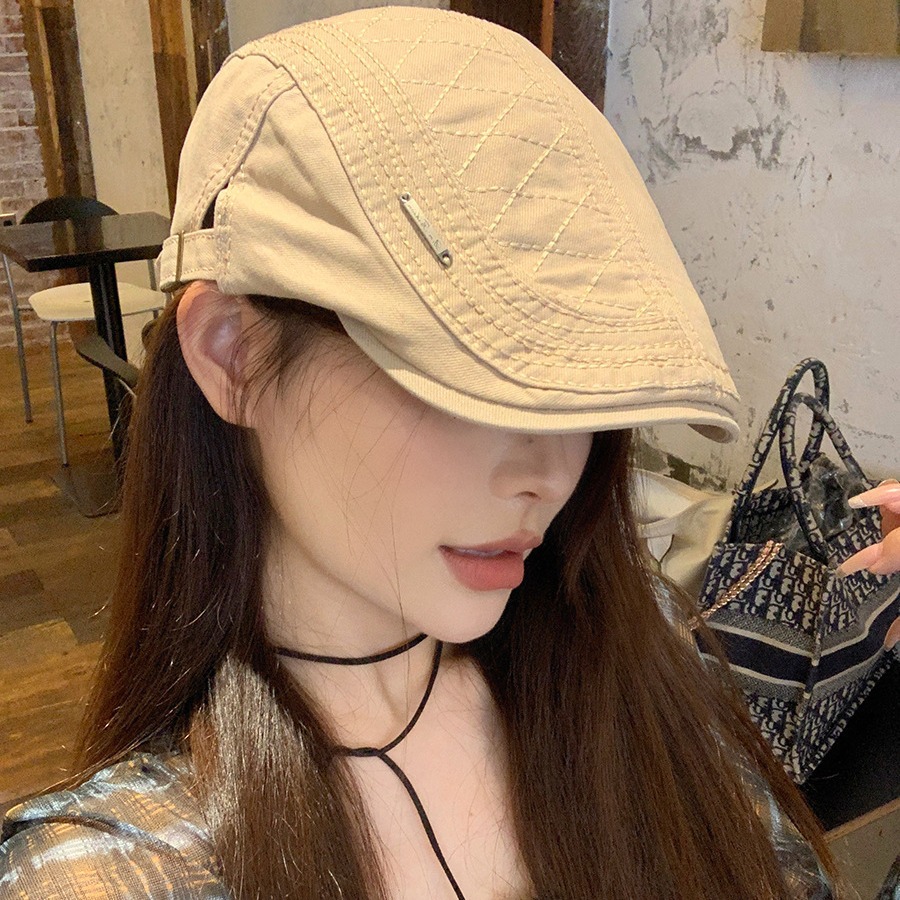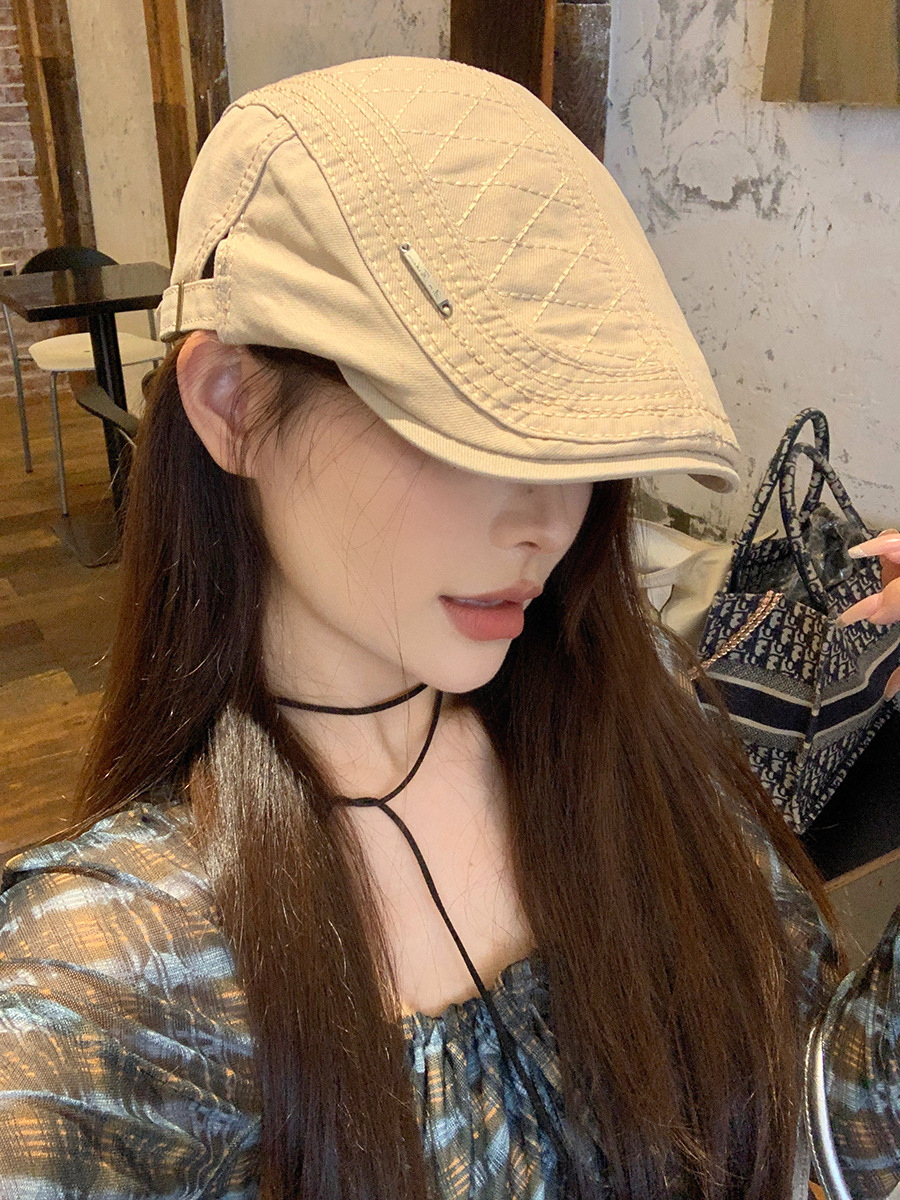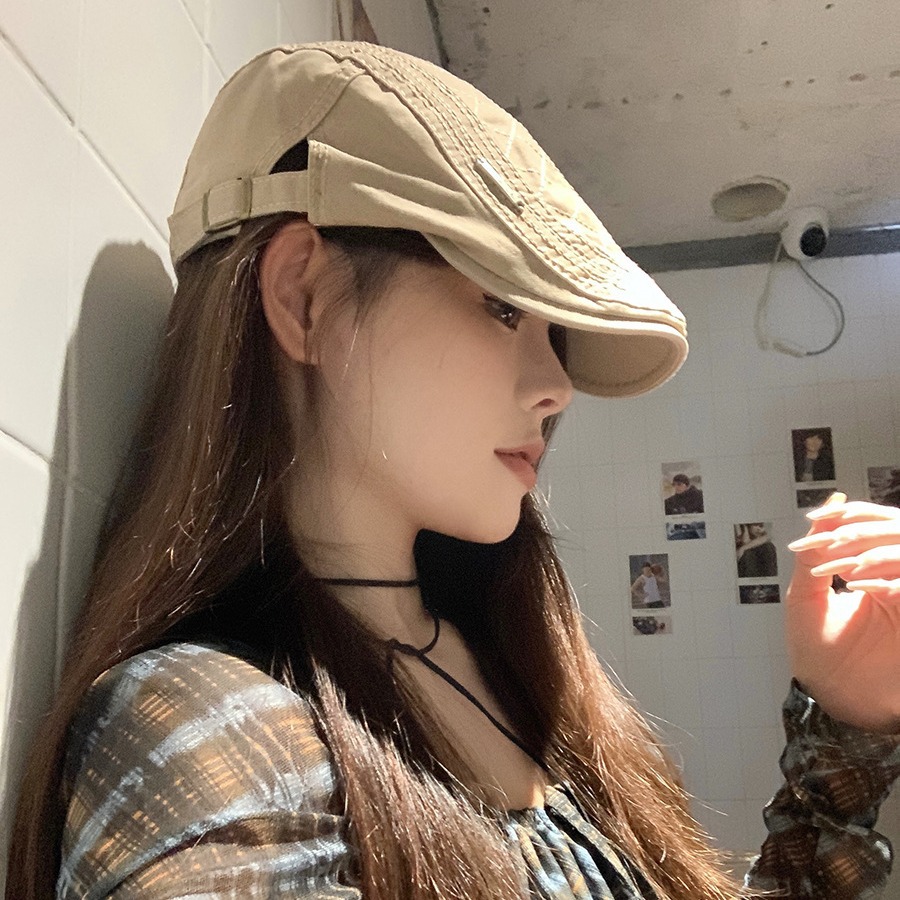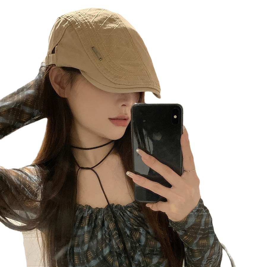 复古前进帽女款夏季新款宽檐显脸小贝雷帽百搭简约薄款透气鸭嘴帽