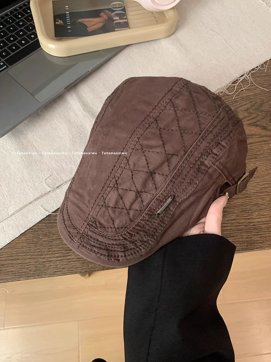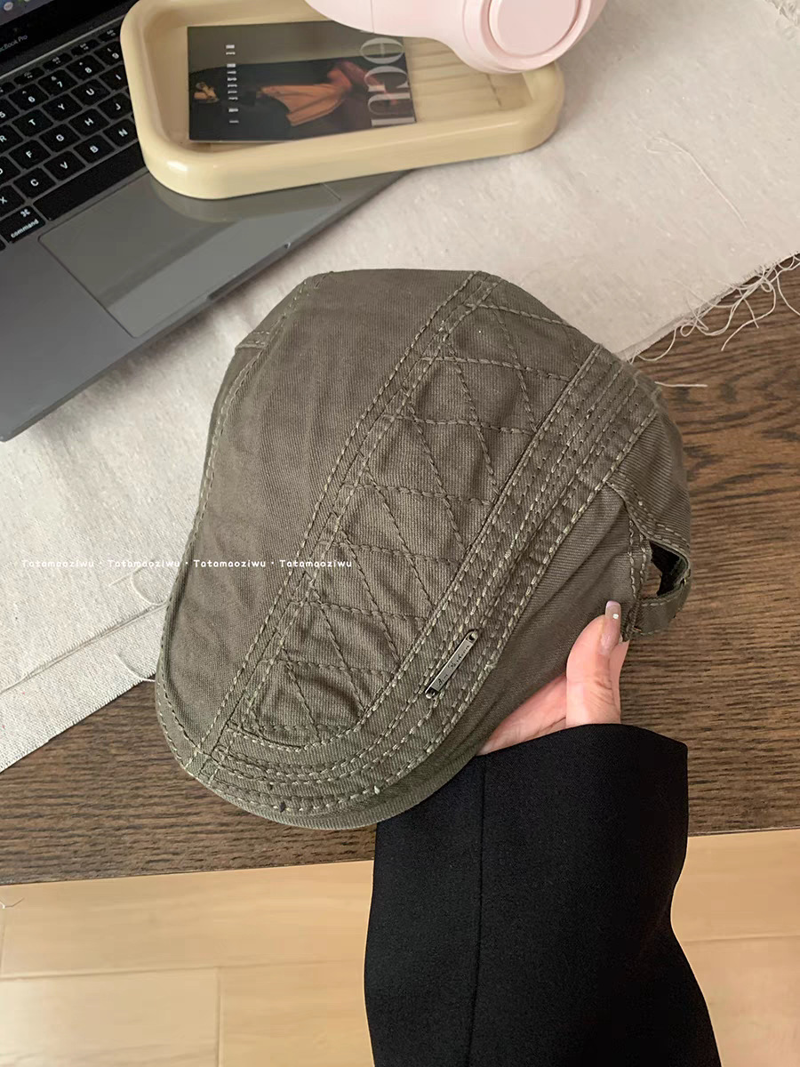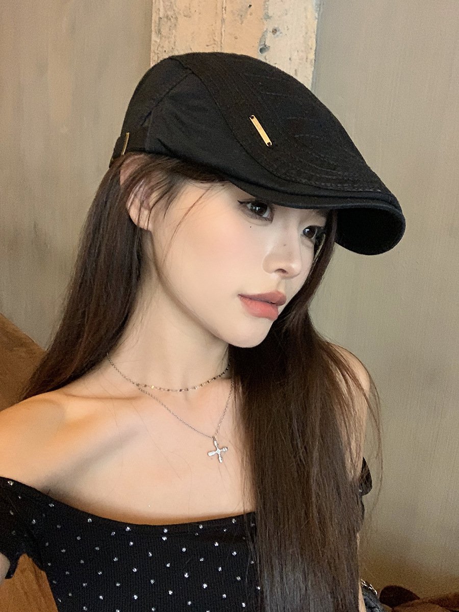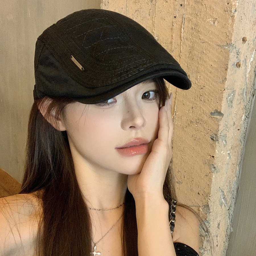 复古前进帽女款夏季新款宽檐显脸小贝雷帽百搭简约薄款透气鸭嘴帽